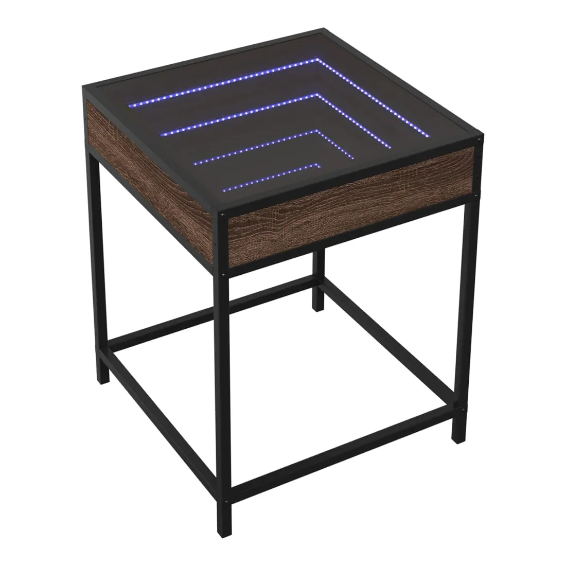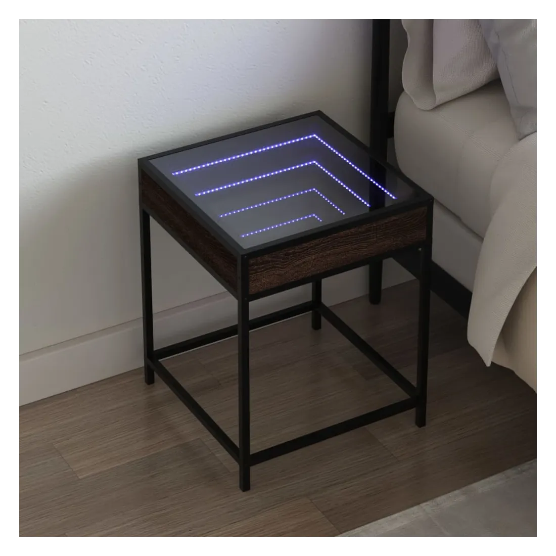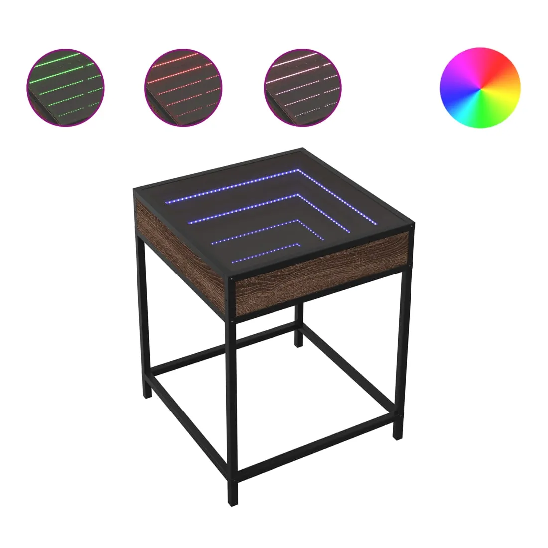 Cette table de chevet avec un miroir à LED infini constitue un ajout intemporel à votre décoration intérieure. Matériau stable et durable : le bois d'ingénierie est un matériau durable et stable dont la surface lisse résiste à l'humidité, à la déformation et au fendillement, ce qui en fait un choix fiable pour une grande variété de projets. Structure robuste : le cadre en métal de la table ajoute un style industriel à votre intérieur tout en garantissant robustesse, stabilité et longévité. Lampes LED RVB pour une ambiance agréable : cette table est dotée de lampes LED qui peuvent être facilement réglées pour créer un spectacle lumineux personnalisé. Vous pouvez personnaliser les modes, les couleurs et la luminosité pour améliorer l'ambiance de votre espace intérieur.Dessus de table stable et robuste : le dessus de table robuste est idéal pour placer vos objets décoratifs ou tout autre objet nécessaire à portée de main. Bon à savoir : Ce produit est doté d'un connecteur USB qui nécessite une source d'alimentation USB de 5V certifiée (non incluse).