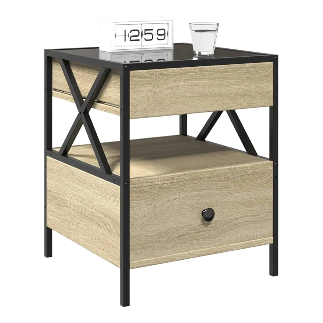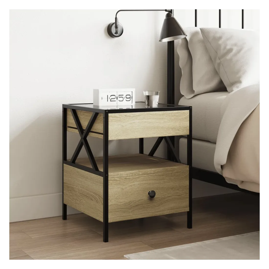 - Matériau : bois d'ingénierie, verre et acier