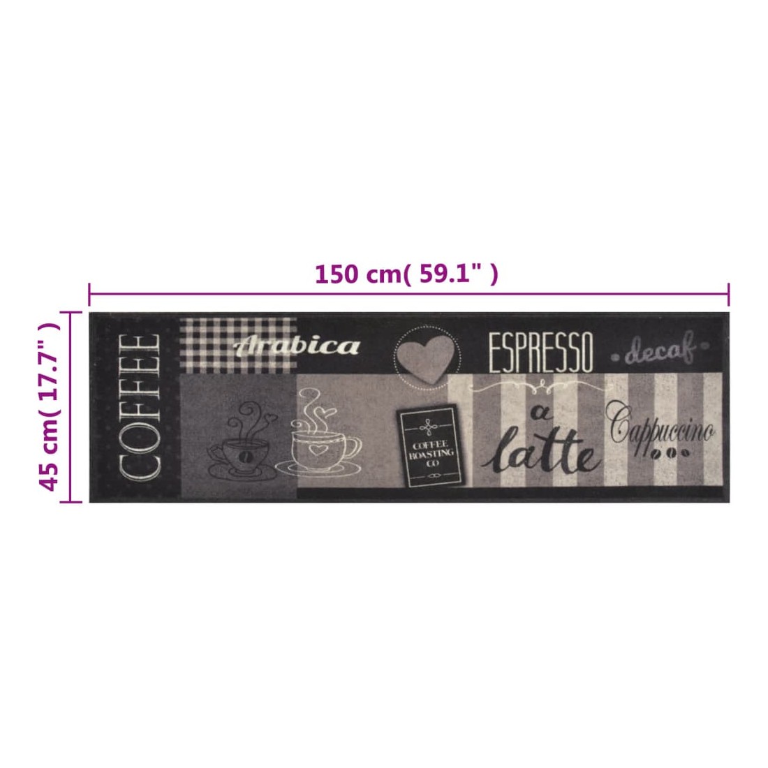 Tapis de cuisine lavable impression café noir 45x150 cm velours
