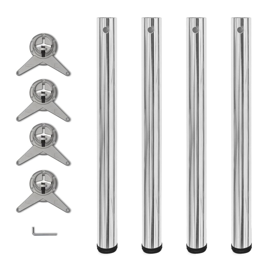 Cet ensemble comprend 4 pieds de table de qualité supérieure qui peuvent être utilisés comme pieds de rechange pour les tables de bars, plans de travail, bureaux, etc. Fabriqués en matériaux de qualité supérieure, ces pieds de table sont très robustes et stables. Grâce aux pieds à vis réglables, la hauteur des pieds de table peut être ajustée pour compenser les sols inégaux. L'assemblage est rapide et très facile.