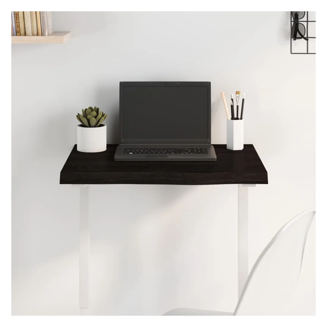 Donnez une nouvelle vie à votre table avec ce dessus de table en bois. C'est une excellente solution pour renouveler votre table à la maison ou dans un cadre commercial. Bois de chêne massif : le dessus de table est en bois de chêne massif, un matériau naturel d'une grande beauté. Le bois de chêne a une couleur marron moyen et un grain dense, ce qui contribue à son aspect unique.Applications polyvalentes : le dessus de table de remplacement peut être combiné avec différentes bases en fonction de vos besoins.Surface traitée : la planche de remplacement a été traitée avec une peinture foncée, elle est donc prête à l'emploi car une finition supplémentaire n'est pas nécessaire.Fabriqué à la main avec un bord vif : le tableau de bricolage est méticuleusement fabriqué à la main et présente un bord vivant qui ajoute à son charme naturel. Chaque pièce de l'étagère présente un caractère unique. La livraison est aléatoire, ce qui garantit l'exclusivité et l'individualité de votre produit. Bon à savoir :En tant que produit naturel, le bois peut présenter des nœuds et des imperfections que nous remplissons avec des garnitures noires pour garantir un aspect lisse.