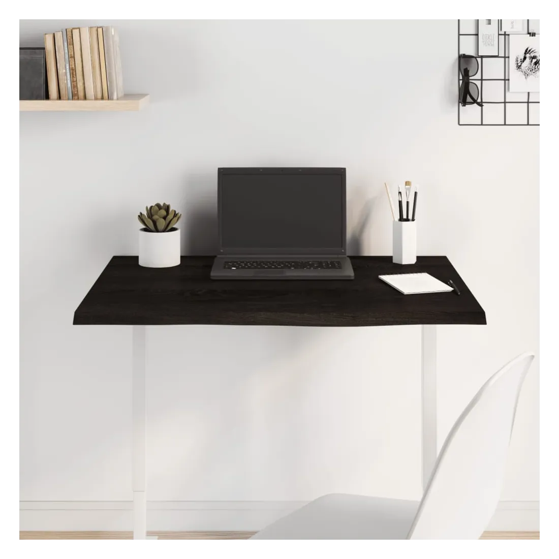 Donnez une nouvelle vie à votre table avec ce dessus de table en bois. C'est une excellente solution pour renouveler votre table à la maison ou dans un cadre commercial. Bois de chêne massif : le dessus de table est en bois de chêne massif, un matériau naturel d'une grande beauté. Le bois de chêne a une couleur marron moyen et un grain dense, ce qui contribue à son aspect unique.Applications polyvalentes : le dessus de table de remplacement peut être combiné avec différentes bases en fonction de vos besoins.Surface traitée : la planche de remplacement a été traitée avec une peinture foncée, elle est donc prête à l'emploi car une finition supplémentaire n'est pas nécessaire.Fabriqué à la main avec un bord vif : le tableau de bricolage est méticuleusement fabriqué à la main et présente un bord vivant qui ajoute à son charme naturel. Chaque pièce de l'étagère présente un caractère unique. La livraison est aléatoire, ce qui garantit l'exclusivité et l'individualité de votre produit. Bon à savoir :En tant que produit naturel, le bois peut présenter des nœuds et des imperfections que nous remplissons avec des garnitures noires pour garantir un aspect lisse.