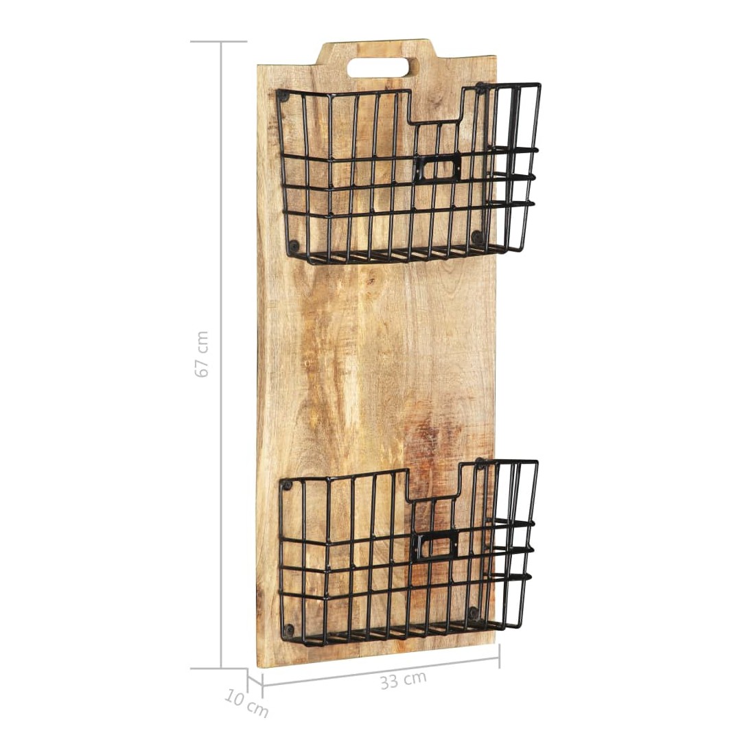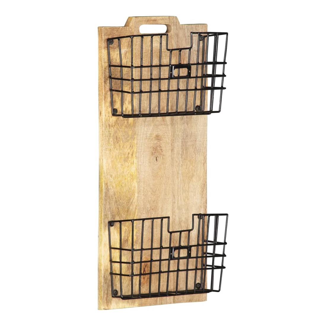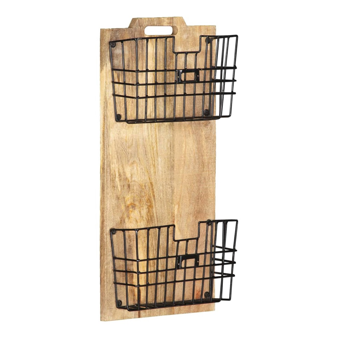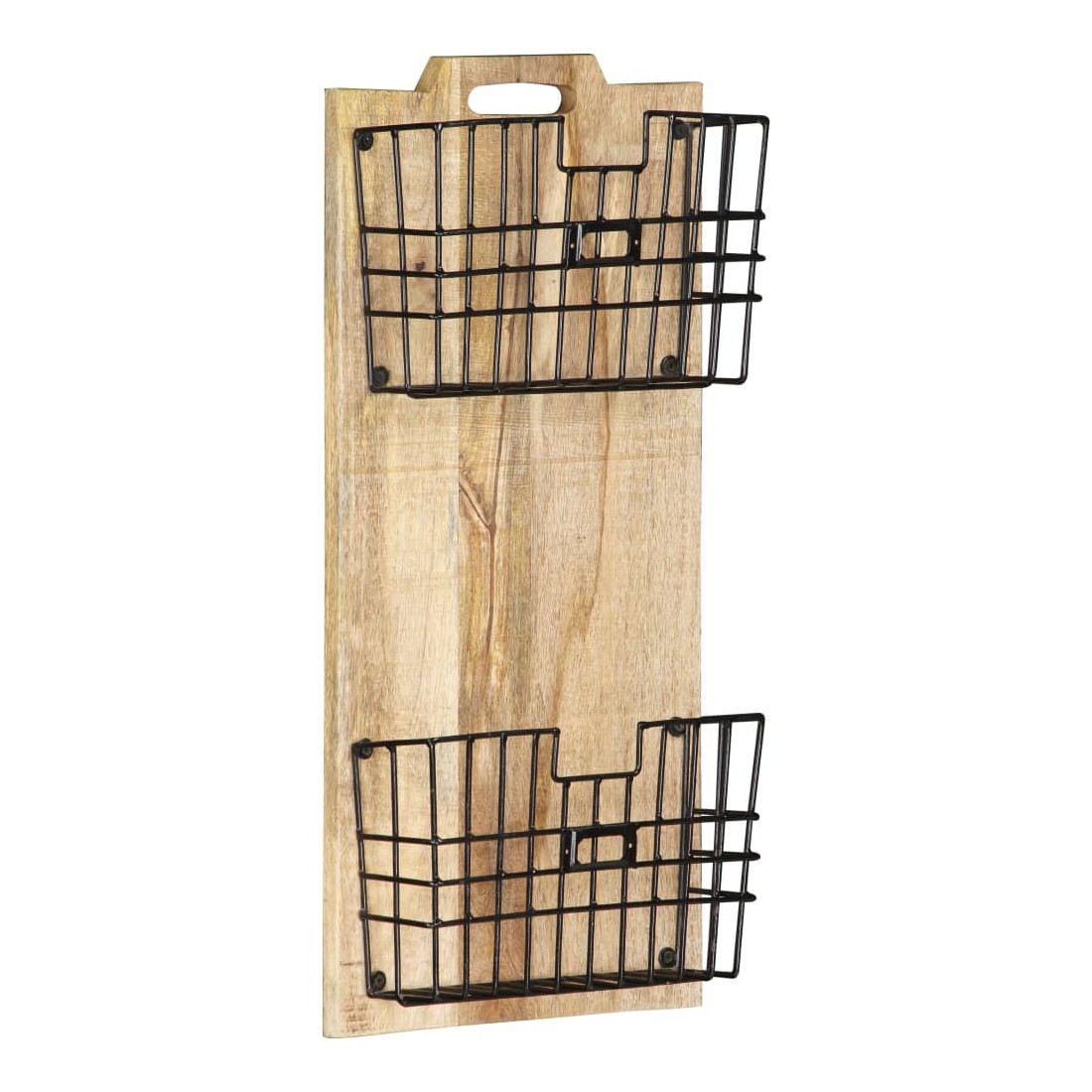 Ce porte-revue mural pratique est une solution de rangement parfaite pour vos journaux et revues. Le porte-journaux se compose de 2 paniers en acier et d'une planche en bois de manguier brut solide, ce qui le rend robuste et durable. Le bois de manguier est un bois dur dense et robuste qui présente des belles stries et des contours bruns ou dorés à sa surface. 2 paniers de rangement inclus seront suffisamment amples pour répondre à votre demande de stockage quotidienne. Remarque importante : le savoir-faire exquis et les magnifiques grains de bois de manguier massif rendent chaque pièce de supports de stockage unique et légèrement différente l'une de l'autre ; la livraison est aléatoire. Ce porte-revue est déjà assemblé ; aucun assemblage n'est requis.