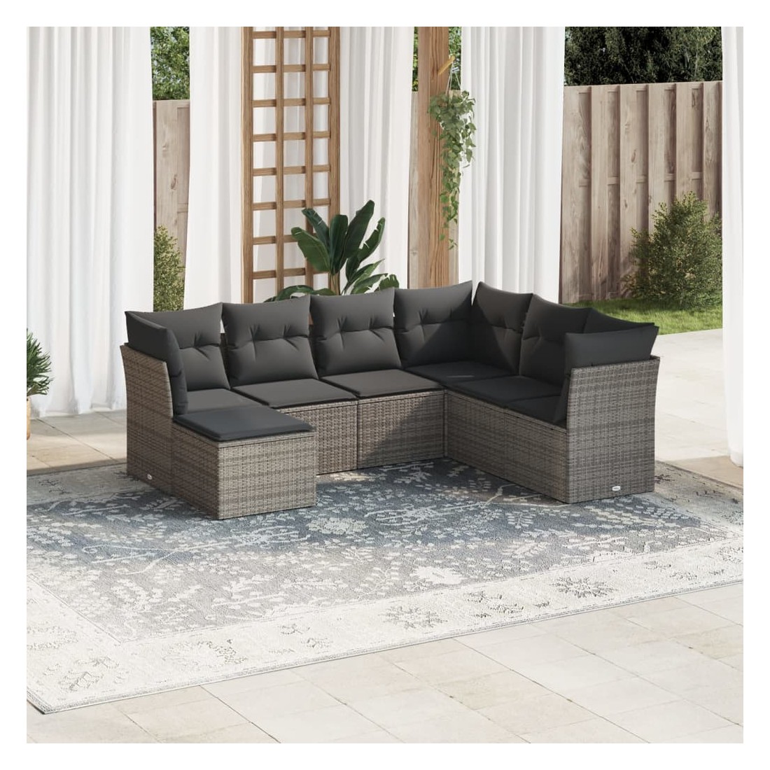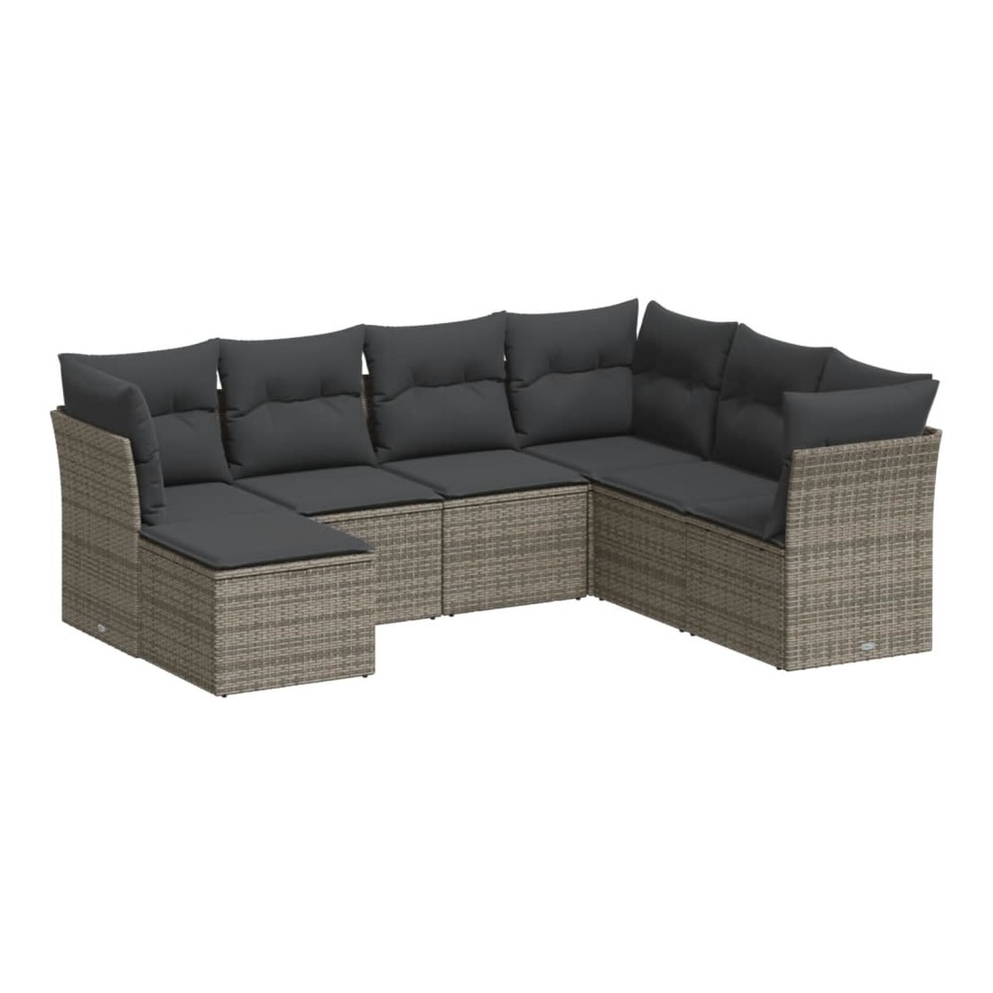 Salon de jardin avec coussins 7 pcs gris résine tressée