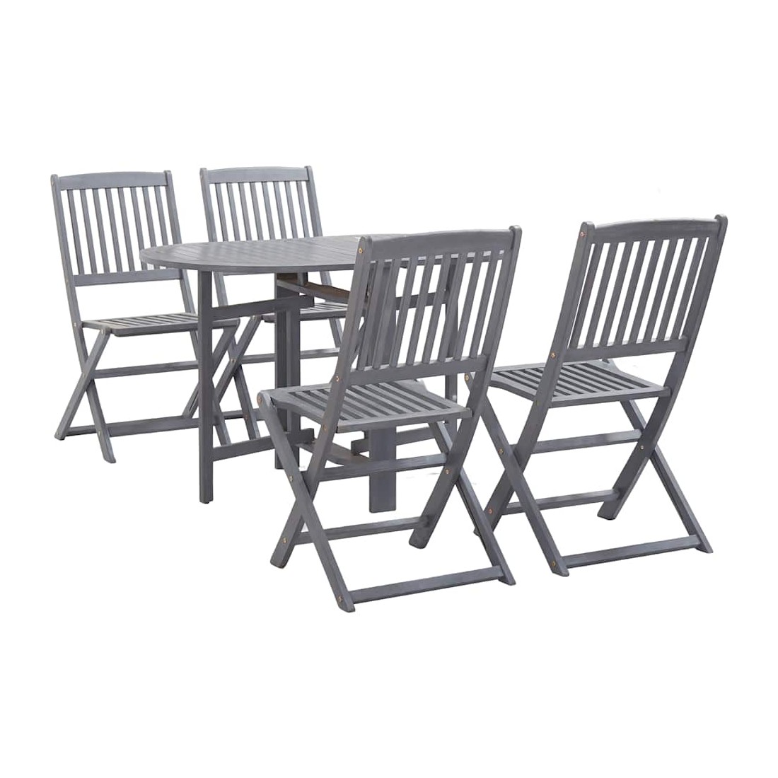 Ce mobilier de salle à manger en bois dégage un charme rustique et deviendra le point central de votre espace de vie extérieur. La table et les chaises sont en bois d'acacia massif avec un lavage gris. Par conséquent, elles sont résistantes aux intempéries, durables et faciles à nettoyer avec un chiffon humide. En raison de la structure en bois robuste, cet ensemble est très stable et sûr. Il vous procurera confort et grande commodité pour passer du temps avec votre famille et vos amis. De plus, la table et les chaises papillon peuvent être pliées dans un format compact lorsqu'elles ne sont pas utilisées pour économiser de l'espace. La livraison comprend 1 table de salle à manger et 4 chaises pliables.