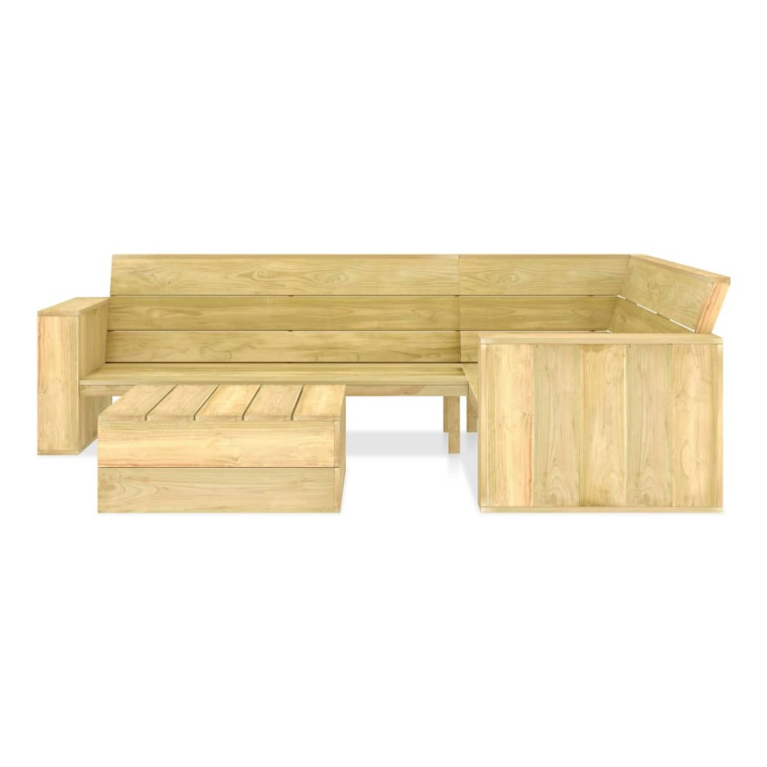 vidaXLNotre salon de jardin sera un choix parfait pour l'heure du café ou pour vous détendre. L'ensemble de mobilier dégage un charme rustique et sera un supplément attrayant à votre jardin, terrasse ou patio. Cet ensemble de mobilier de jardin est en bois de pin imprégné, résistant aux intempéries et très durable. Les accoudoirs contribueront à votre confort d'assise. La table à thé peut contenir vos livres et cafés, et peut également servir de repose-pied. Le mobilier de jardin doit être assemblé. Veuillez noter que le bois est un produit naturel et peut présenter des imperfections.