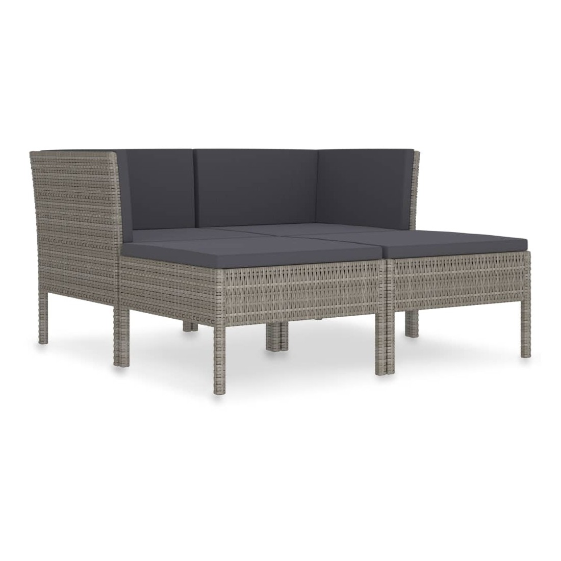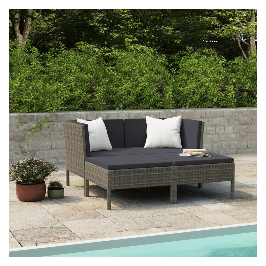 Salon de jardin 4 pcs avec coussins résine tressée gris