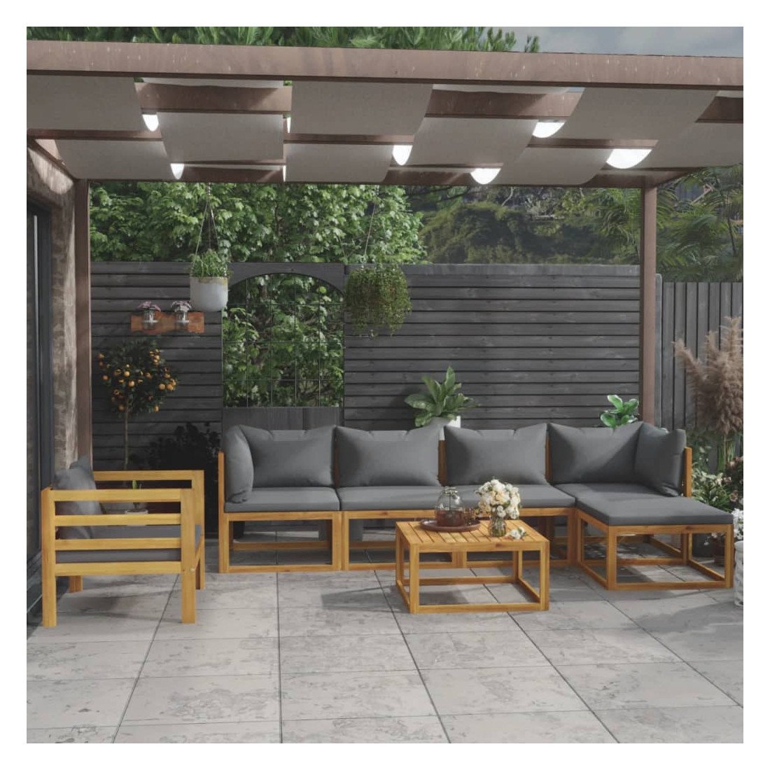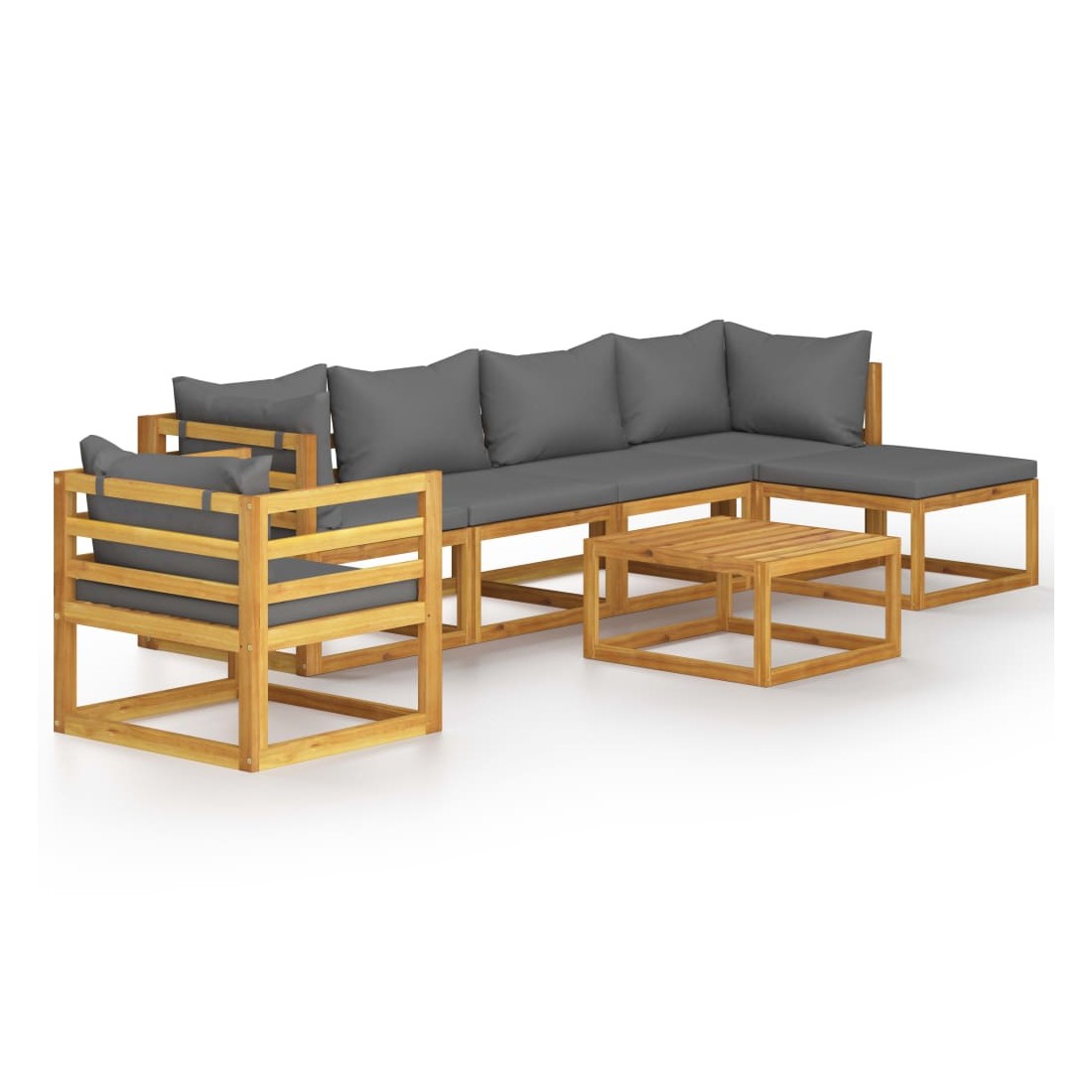 Salon de jardin 7 pcs avec coussin Bois d'acacia solide