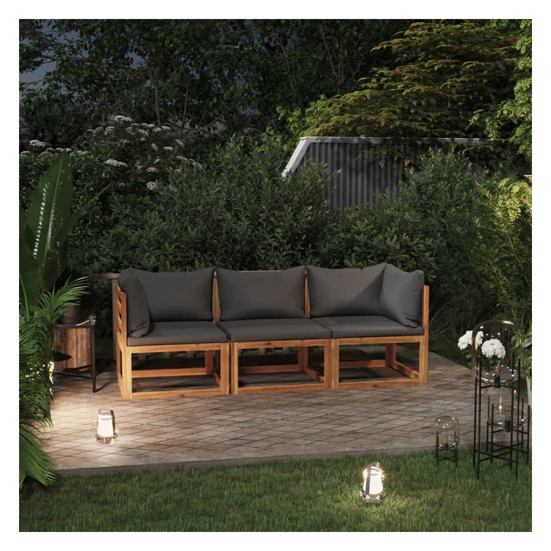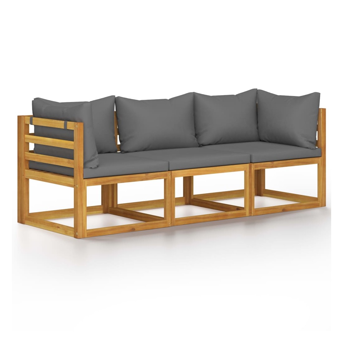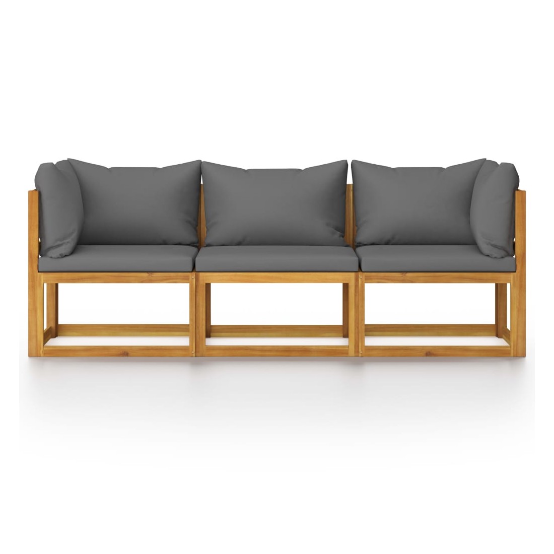 Ce canapé de jardin à 3 places en bois sera un choix idéal pour vous détendre et profiter du beau temps, faire une sieste ou discuter avec votre famille ou vos amis. Avec un design intemporel, le canapé en bois ajoutera une touche de charme rustique à votre patio, balcon, jardin ou même aux espaces intérieurs ! Doté d'un cadre en bois d'acacia massif, l'ensemble de canapé est solide, robuste et durable; et sa finition à l'huile rend l'ensemble de canapé adapté à une utilisation dehors. Les coussins d'assise et de dossier amovibles sont bien rembourrés, afin d'offrir un excellent confort d'assise. De plus, grâce à sa conception modulaire, toutes les pièces peuvent être arrangées et personnalisées selon vos besoins.