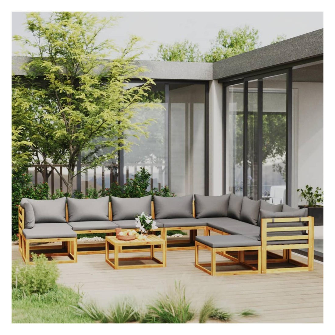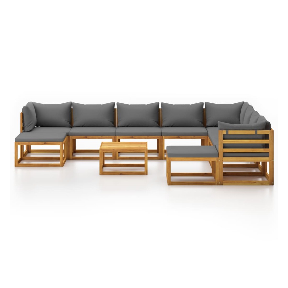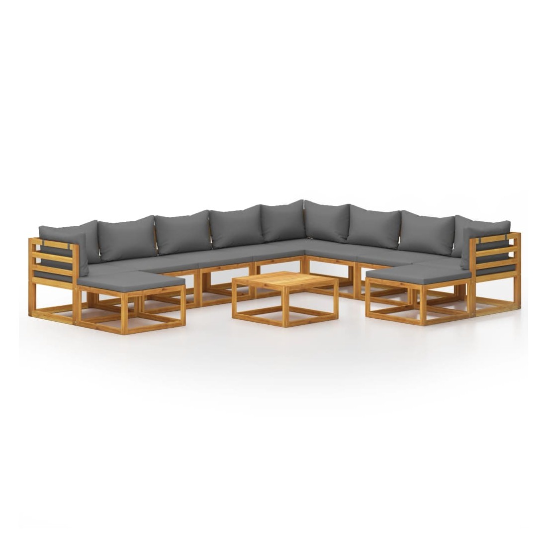 Salon de jardin 11 pcs avec coussin Bois d'acacia solide