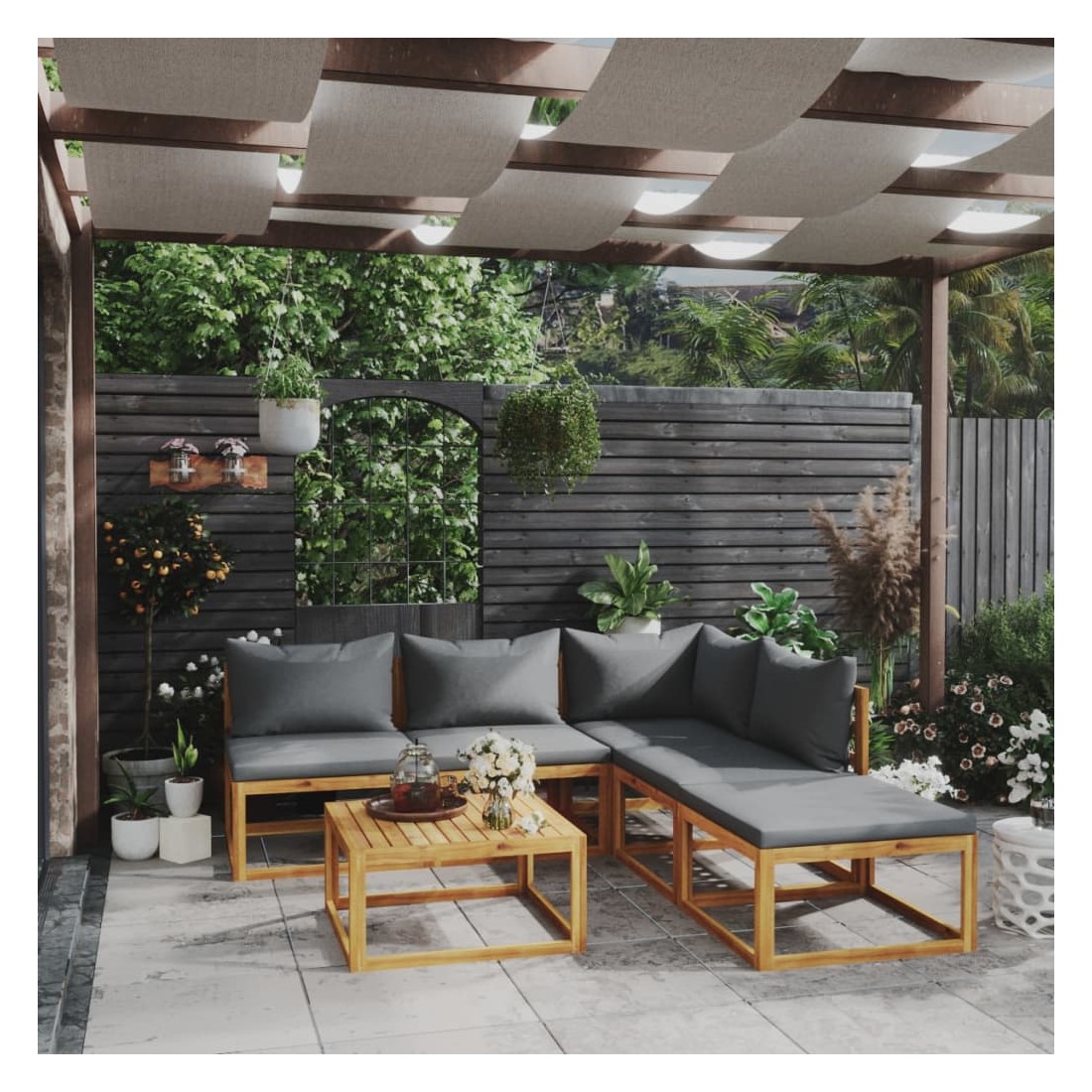 Salon de jardin 6 pcs avec coussin Bois d'acacia solide