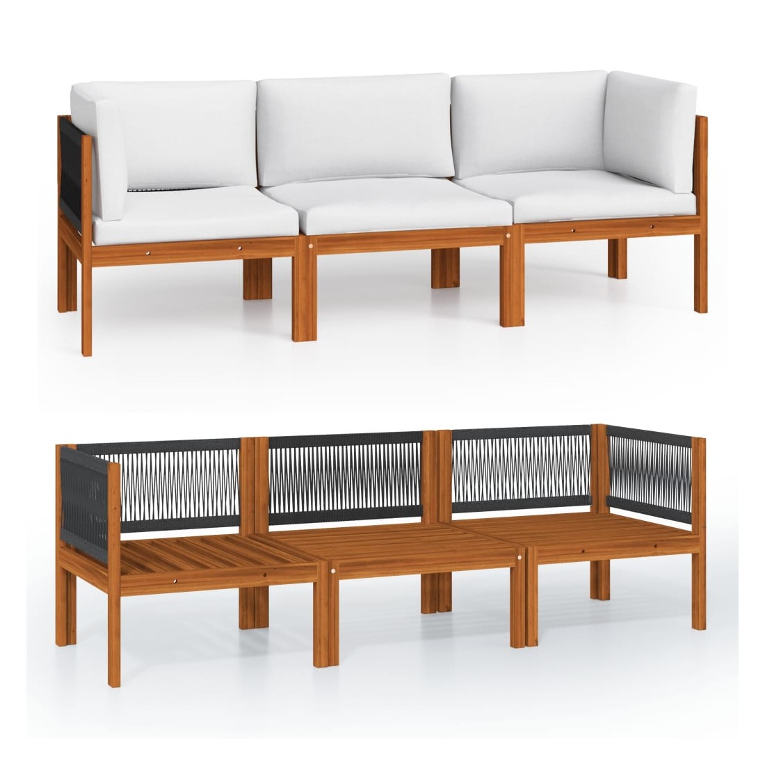 Canapé de jardin 3 places avec coussin en bois d'acacia et corde