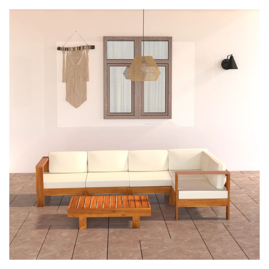 Décorez votre cour, transformez-la en un endroit accueillant pour vous asseoir et apprécier votre environnement ! Le salon de jardin en bois est un choix idéal pour vous détendre et vivre du bon temps avec vos amis ou votre famille dans le jardin, sur le patio ou le balcon. Le salon d'extérieur est soigneusement fabriqué en bois d'acacia massif, ce qui le rend robuste, durable et adapté à une utilisation en plein air. Les coussins de siège et les coussins de dossier bien rembourrés offrent un confort supplémentaire pendant votre temps de détente. La surface à finition à l'huile est facile à nettoyer avec un chiffon humide. De plus, le dessus de table robuste est idéal pour placer les boissons et les aliments à portée de main. Remarque : afin de prolonger la durée de vie des meubles d'extérieur, nous vous recommandons de les protéger avec une housse imperméable.