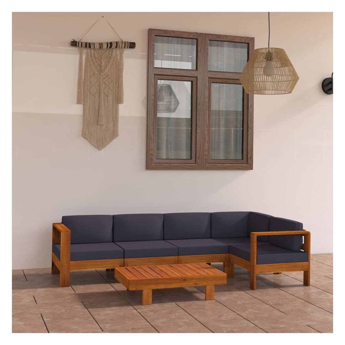Décorez votre cour, transformez-la en un endroit accueillant pour vous asseoir et apprécier votre environnement ! Le salon de jardin en bois est un choix idéal pour vous détendre et vivre du bon temps avec vos amis ou votre famille dans le jardin, sur le patio ou le balcon. Le salon d'extérieur est soigneusement fabriqué en bois d'acacia massif, ce qui le rend robuste, durable et adapté à une utilisation en plein air. Les coussins de siège et les coussins de dossier bien rembourrés offrent un confort supplémentaire pendant votre temps de détente. La surface à finition à l'huile est facile à nettoyer avec un chiffon humide. De plus, le dessus de table robuste est idéal pour placer les boissons et les aliments à portée de main. Remarque : afin de prolonger la durée de vie des meubles d'extérieur, nous vous recommandons de les protéger avec une housse imperméable.