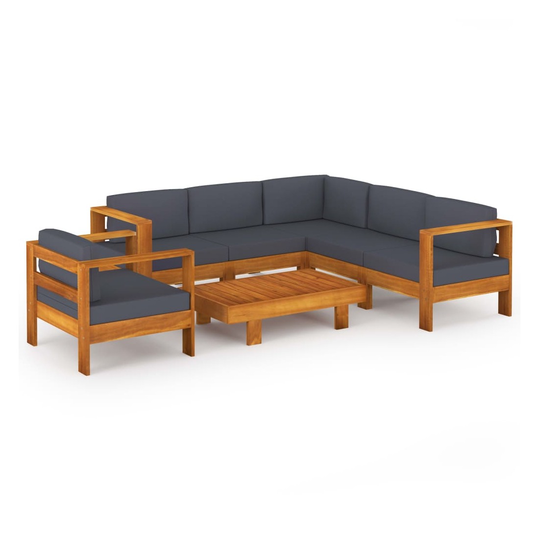 Salon de jardin 7 pcs avec coussins gris foncé Bois d'acacia