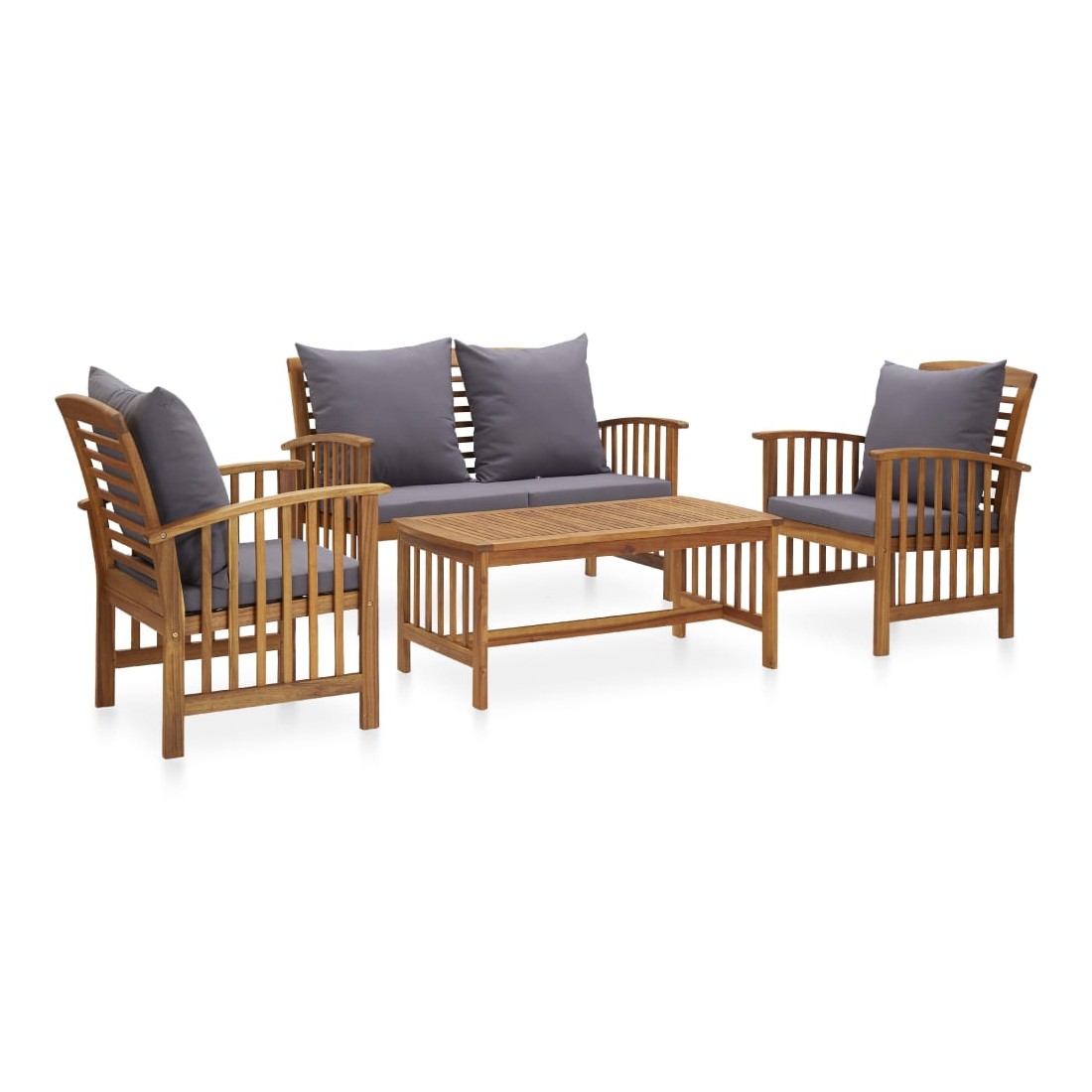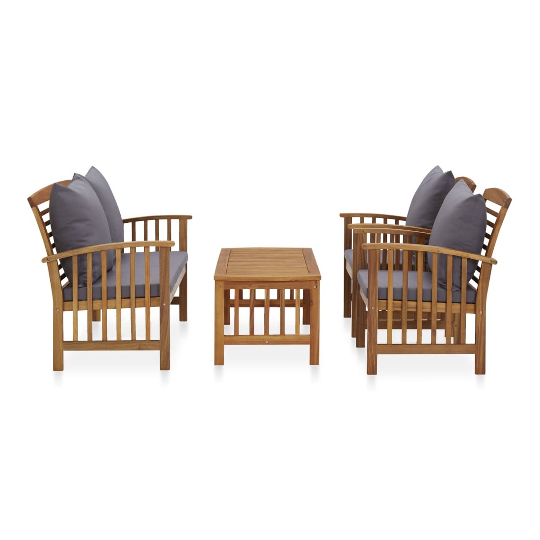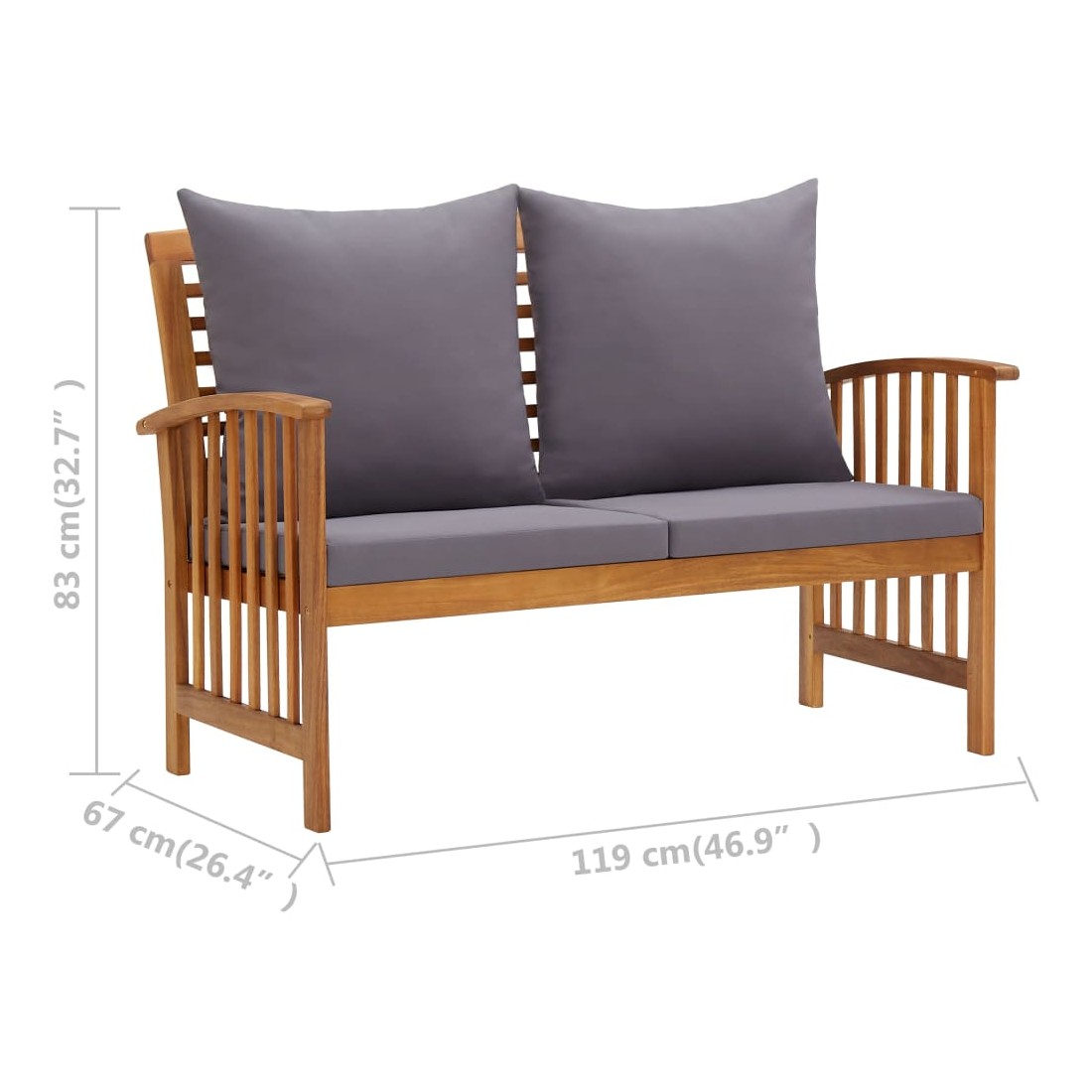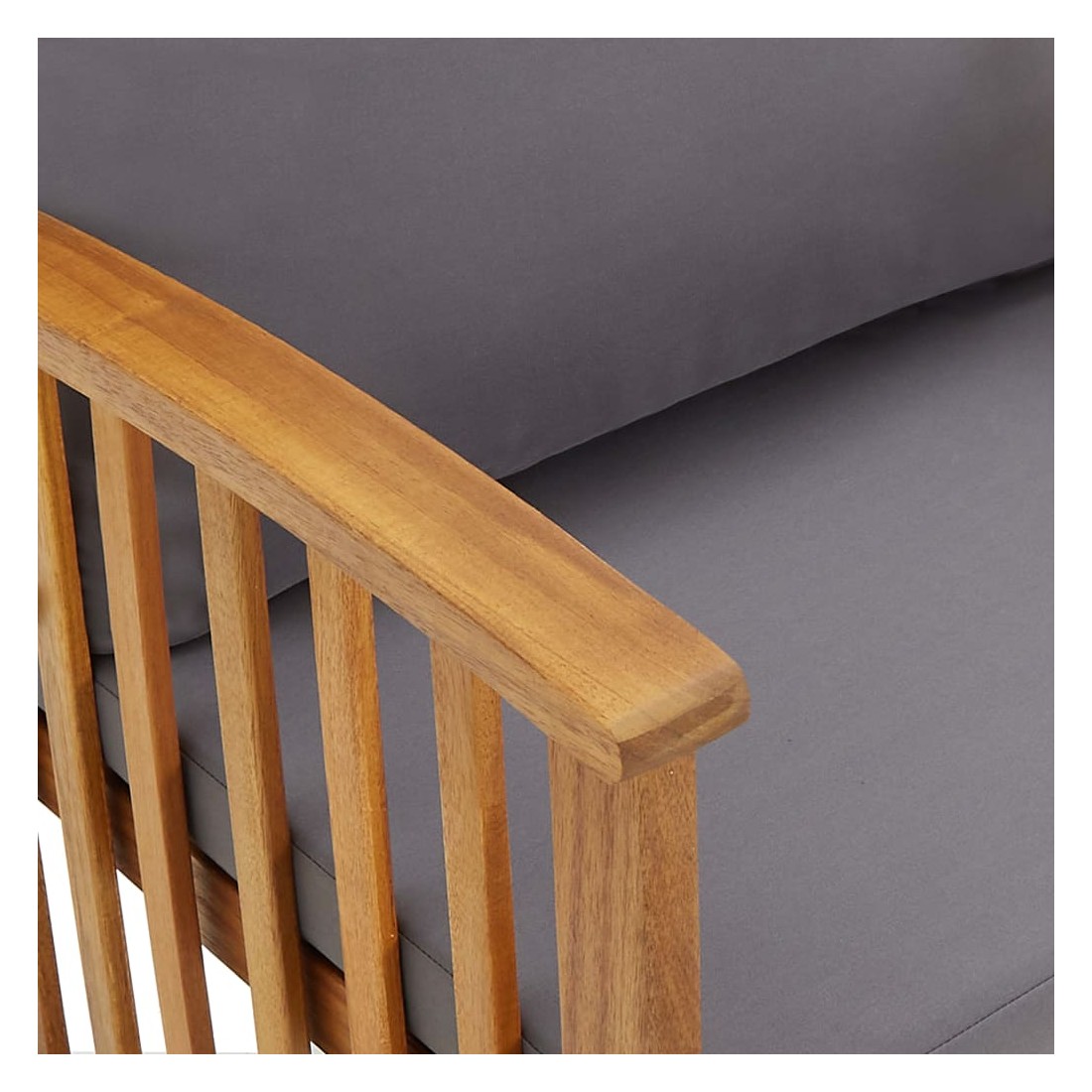 L'ensemble de salon de jardin en bois ajoute un look vintage et est spécialement conçu pour votre jardin, patio ou autre espace de vie extérieur ! L’ensemble de meubles d’extérieur est construit en bois d'acacia massif avec une finition à l’huile, ce qui le rend stable et durable. Les coussins épais d'assise et de dossier rendent l'ensemble doux pour vous y asseoir. Grâce au dessus de table en bois massif au design à lattes, la table basse vous offre de l’espace pour mettre vos collations, paniers de fruits, objets décoratifs, ainsi que d’autres essentiels. Le dossier légèrement incurvé et les accoudoirs ajoutent au confort d'assise du banc et de la chaise. Remarque importante : les couleurs et les grains varient d'une pièce à l'autre, ce qui rend chaque pièce unique. La livraison est également aléatoire.