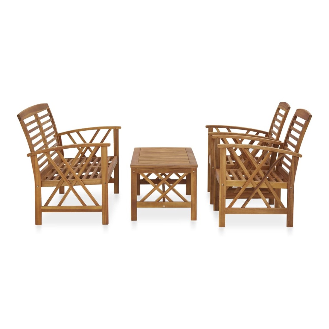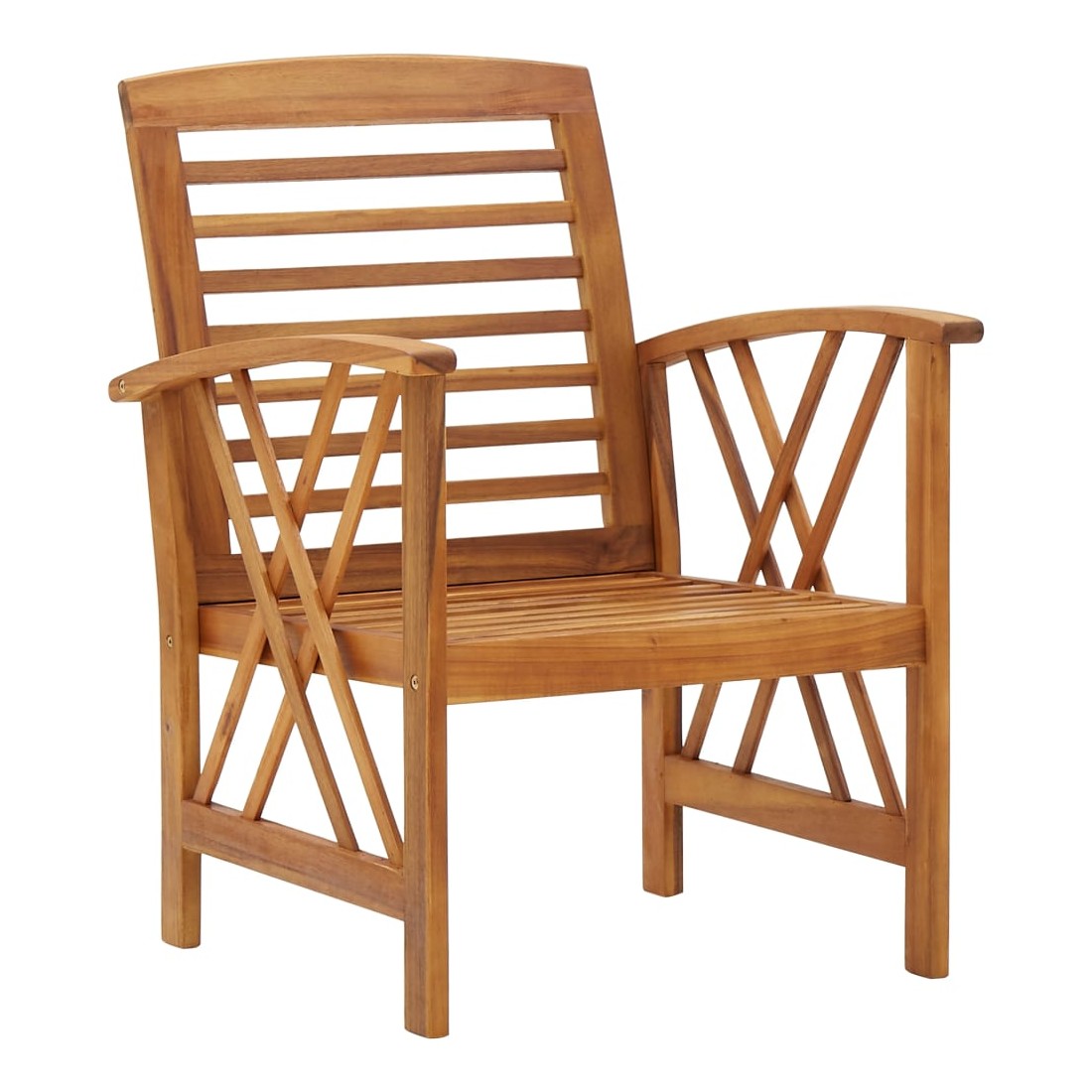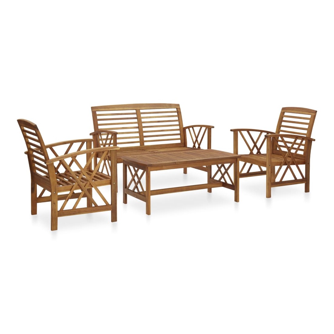 Ce salon de jardin en bois est un choix parfait pour votre jardin, patio ou autre espace de vie extérieur ! Bois d’acacia massif : l’ensemble de meubles d’extérieur est construit en bois d'acacia massif avec une finition à l’huile, ce qui le rend stable et durable.Expérience d’assise confortable : le dossier légèrement incurvé et les accoudoirs ajoutent au confort d'assise du banc et de la chaise.Dessus de table en bois : grâce au dessus de table en bois massif au design à lattes, la table basse vous offre de l’espace pour mettre vos collations, paniers de fruits, objets décoratifs, ainsi que d’autres essentiels. Bon à savoir :Les couleurs et les grains varient d'une pièce à l'autre, rendant chaque meuble unique. La livraison est aléatoire.