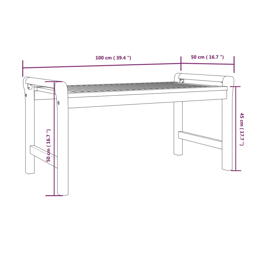 - Dimensions du banc : 121 x 60 x 81 cm (l x P x H)