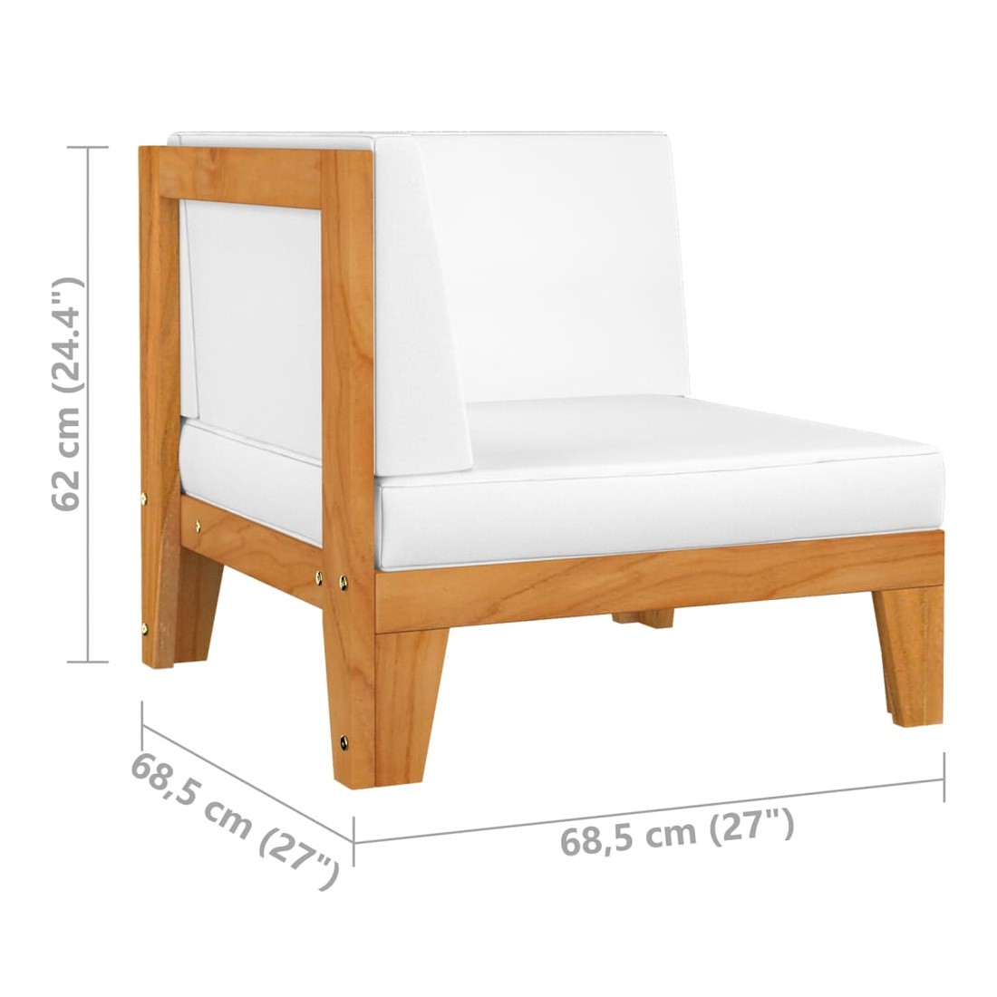 - Dimensions du canapé d'angle : 68,5 x 68,5 x 62 cm (l x P x H)