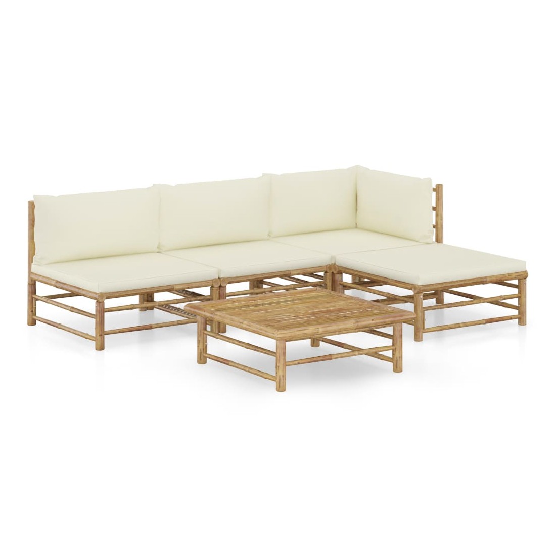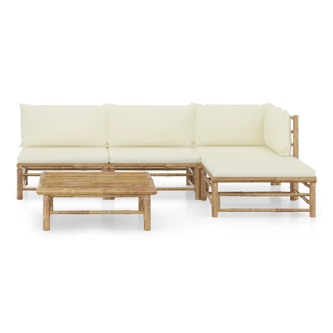 Créez un coin salon relaxant avec ce salon de jardin en bambou. Matériau durable : ce salon de jardin est en bambou, ce qui le rend robuste et facile à nettoyer. Expérience d’assise confortable : les coussins bien rembourrés ajoutent un confort supplémentaire à votre temps de détente. Housse amovible et lavable : les housses de coussin sont amovibles et lavables avec des fermetures éclair. Facile à déplacer : avec une construction légère, cet ensemble de salon d'extérieur est facile à déplacer. Conception modulaire : cet ensemble de meubles d'extérieur a une conception modulaire, ce qui le rend complètement flexible et facile à déplacer, afin que vous puissiez créer un agencement de meubles d'extérieur personnalisé. Bon à savoir :Pour que vos meubles d'extérieur restent beaux, nous vous recommandons de les protéger avec une housse imperméable.