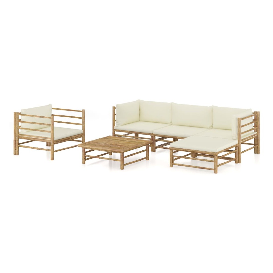 Salon de jardin 6 pcs avec coussins blanc crème bambou