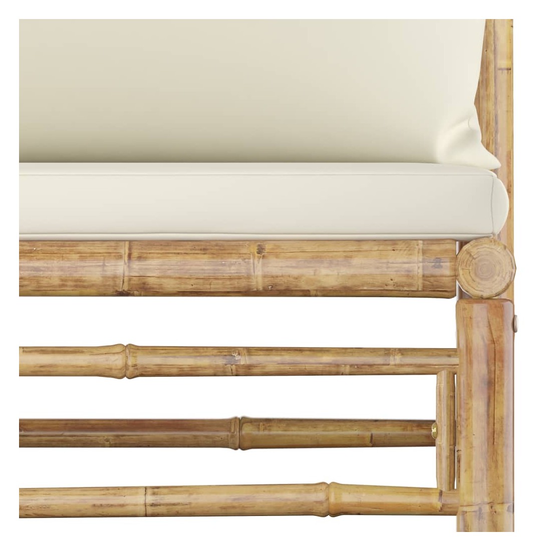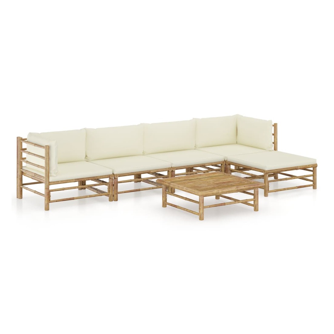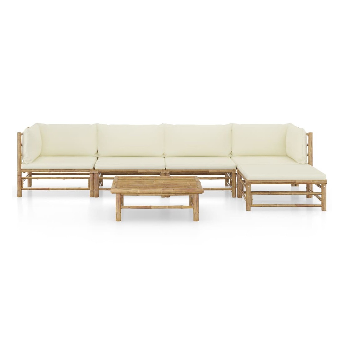 Salon de jardin 6 pcs avec coussins blanc crème bambou