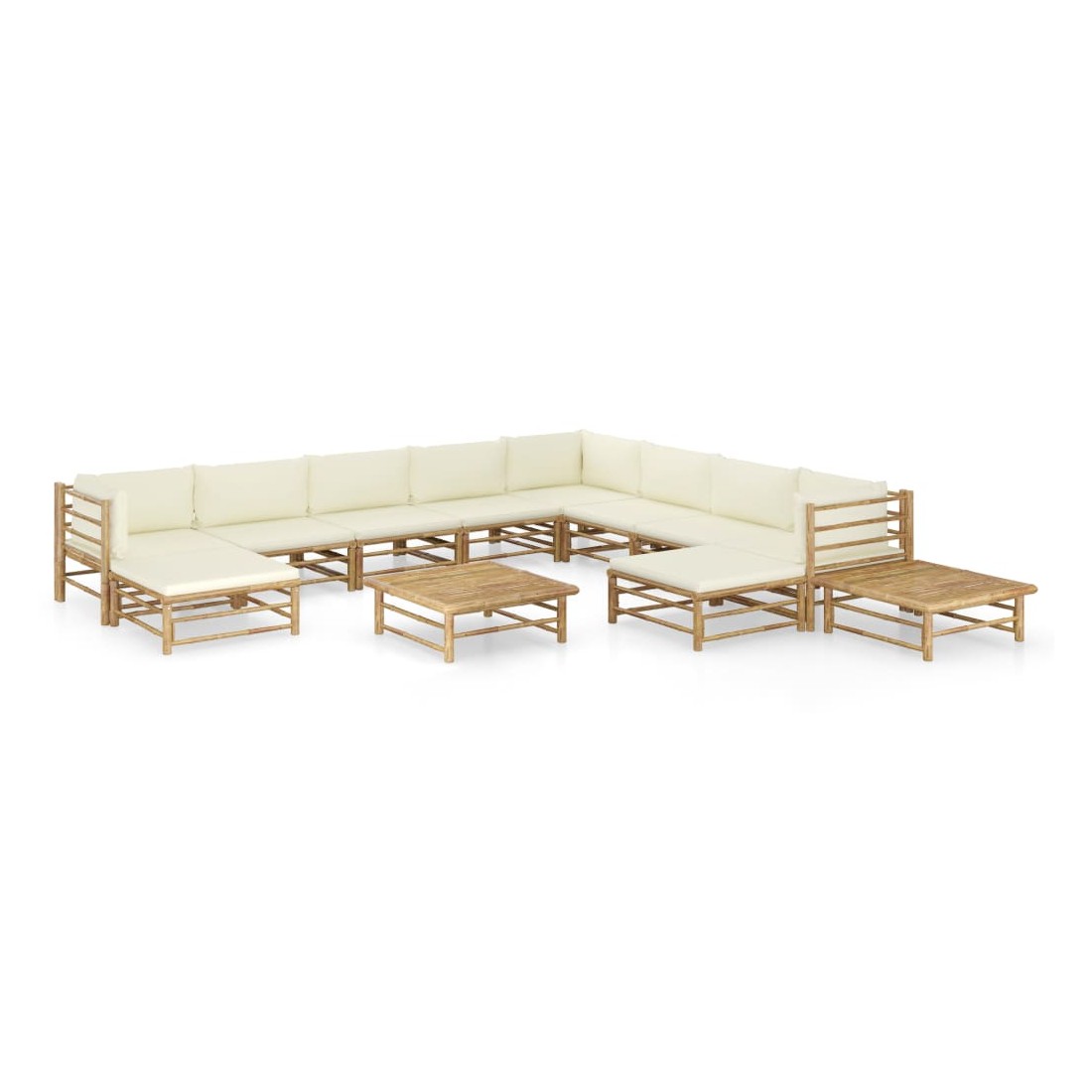 Créez un coin salon relaxant avec ce salon de jardin en bambou. Ce salon de jardin est en bambou, ce qui le rend robuste et facile à nettoyer. Les coussins bien rembourrés ajoutent un confort supplémentaire à votre temps de détente. Les housses de coussin sont amovibles et lavables avec des fermetures éclair. Avec une construction légère, cet ensemble de salon d'extérieur est facile à déplacer. Grâce à la conception modulaire, vous pouvez placer l’ensemble dans n’importe quel arrangement selon vos préférences. Remarque : afin de prolonger la durée de vie des meubles d'extérieur, nous vous recommandons de les protéger avec une housse imperméable.