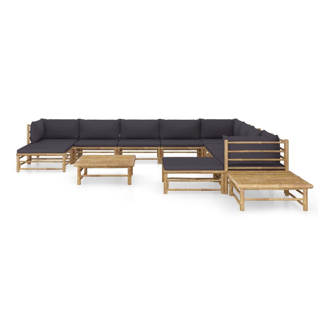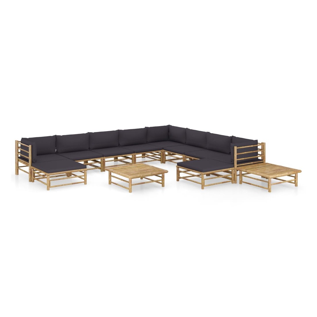 Salon de jardin 12 pcs avec coussins gris foncé bambou