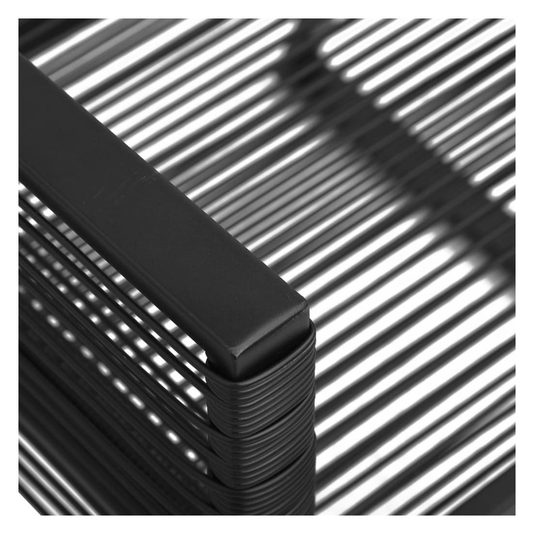 • Matériau : rotin PVC, acier enduit de poudre, verre