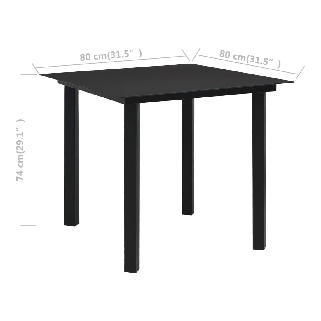 • Dimensions de la table : 80 x 80 x 74 cm (L x I x H)