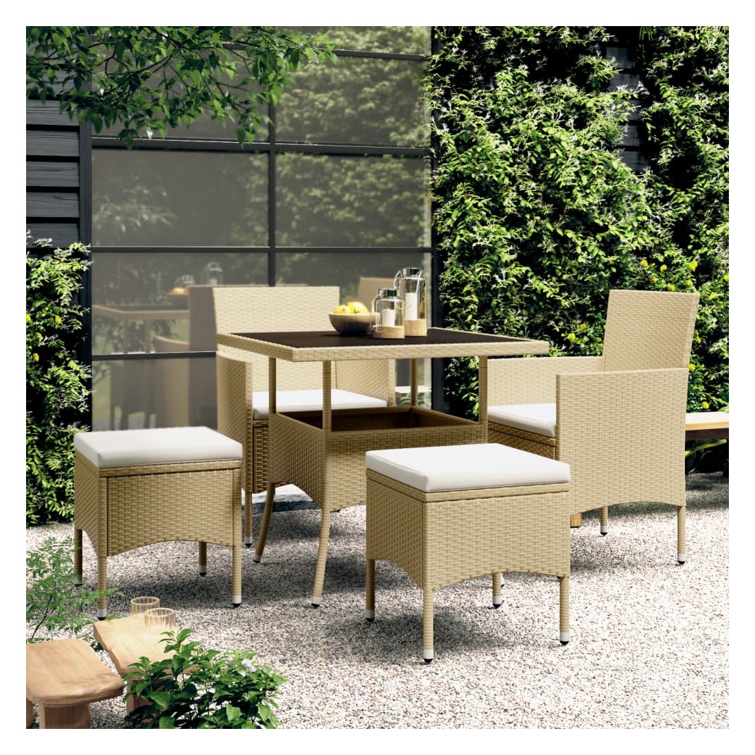 Ensemble à manger de jardin 5 pcs Résine tressée Beige