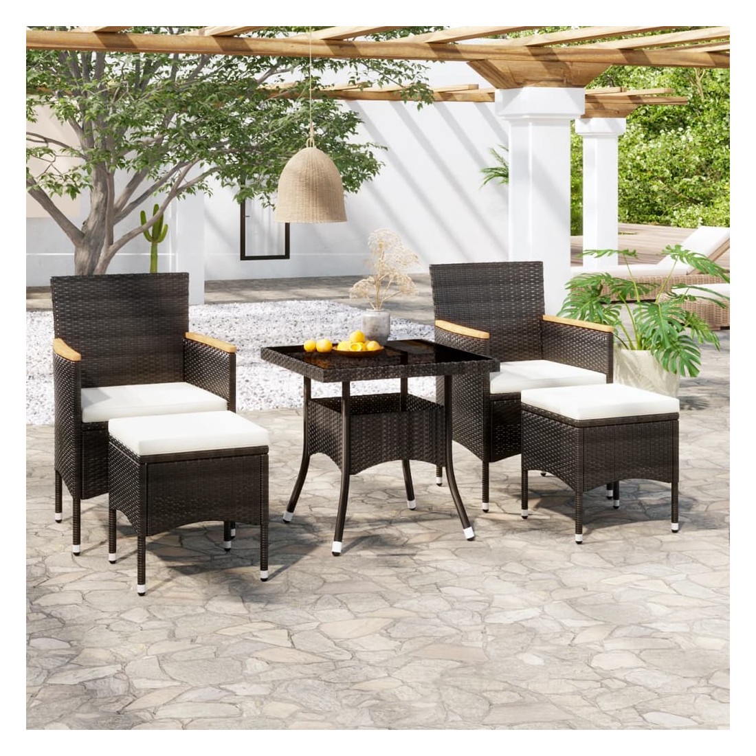 Cet ensemble élégant de salle à manger de jardin vous permet de passer des moments agréables et confortables avec votre famille et vos amis. Avec un cadre en acier enduit de poudre recouvert de résine tressée résistante aux intempéries avec protection UV, la table et les chaises sont durables et stables. Conçues avec un dossier et des accoudoirs incurvés, les chaises vous offrent du confort. Les coussins sont inclus pour plus de confort et la housse à fermeture éclair est amovible pour un lavage facile. Le dessus de table est en verre trempé renforcé avec un support résistant, facile à nettoyer et à entretenir. Les deux repose-pieds vous offrent également des places d'assise supplémentaires. De plus, la construction légère rend chaque pièce facile à déplacer, à réorganiser et à transpo