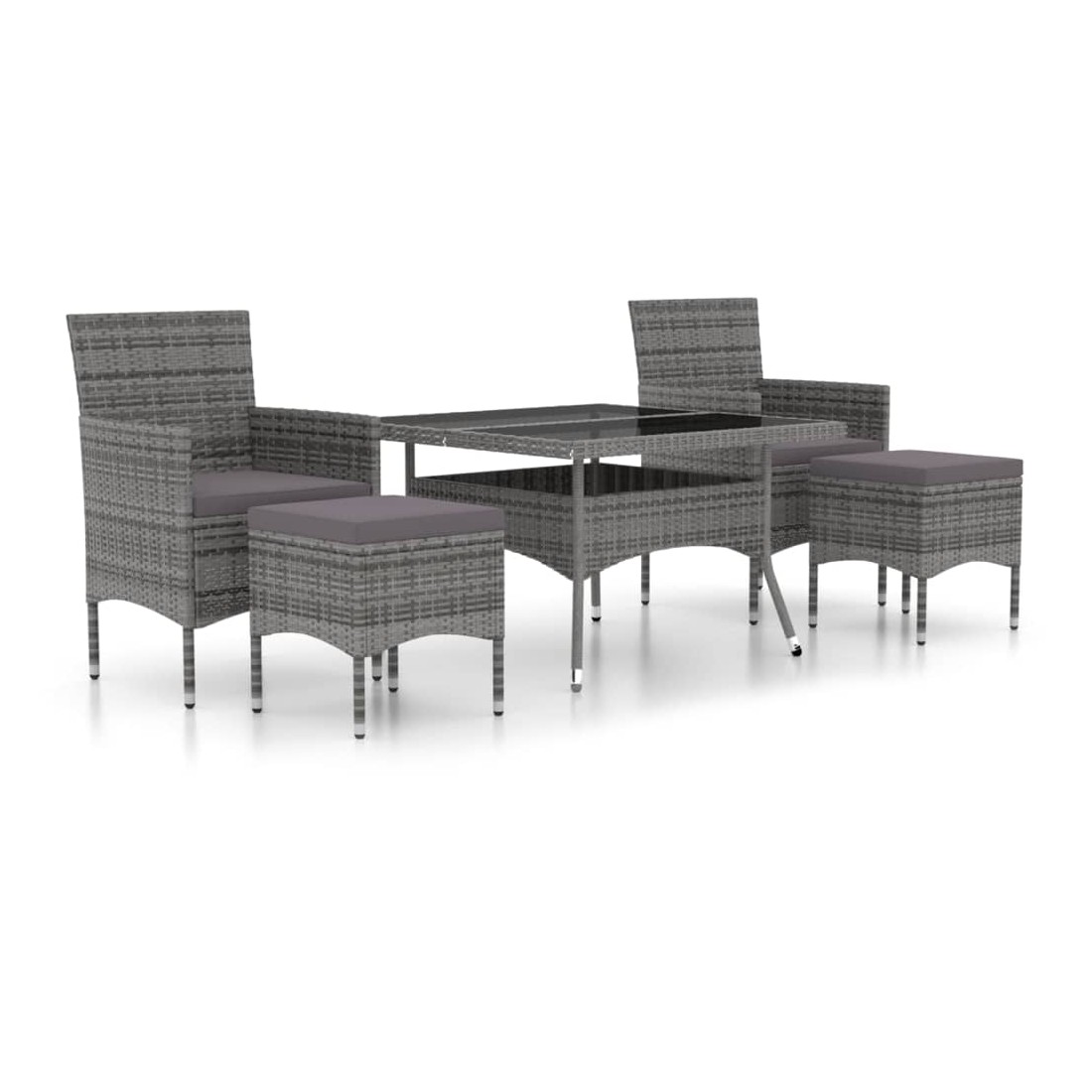 Ensemble à Manger jardin 5 pcs résine tressée verre trempé Gris