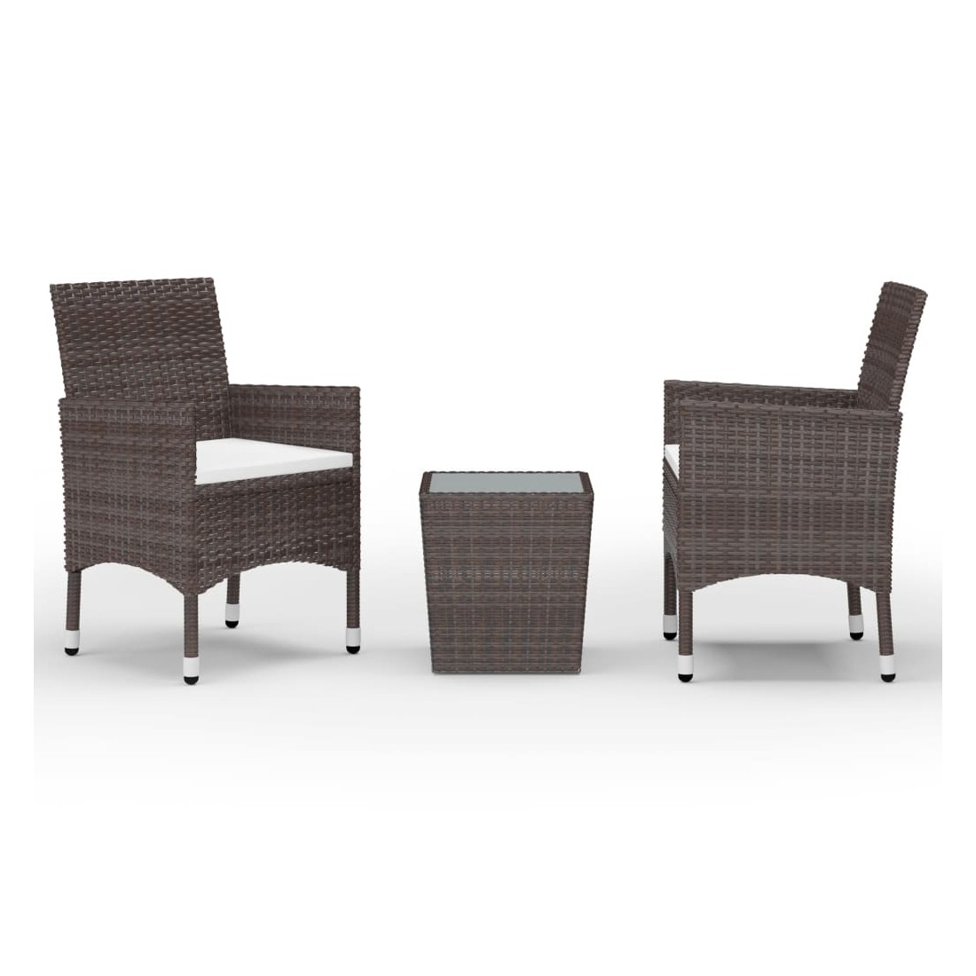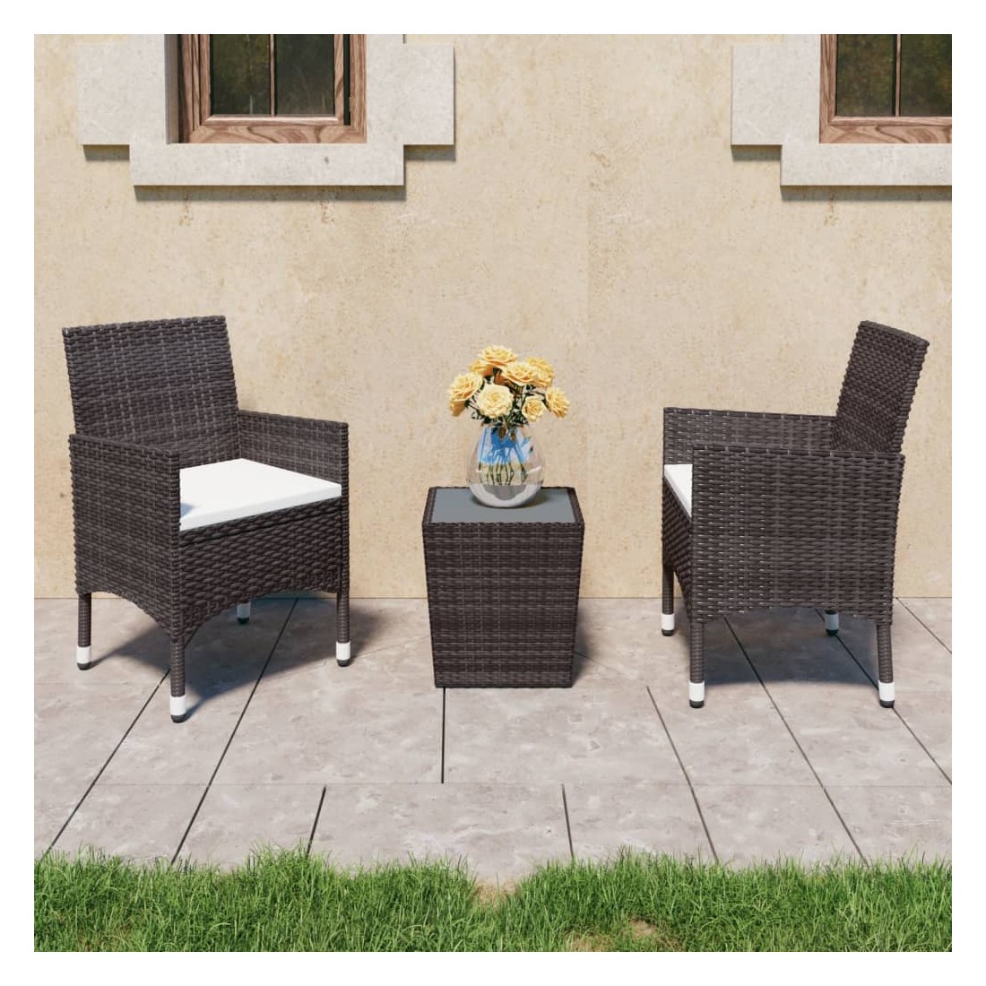Ensemble de bistro 3 pcs Résine tressée et verre trempé Marron