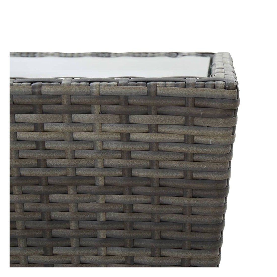 • Matériau : résine tressée, acier, tissu (100 % polyester), bois d'acacia massif avec une finition à l'huile, verre trempé
