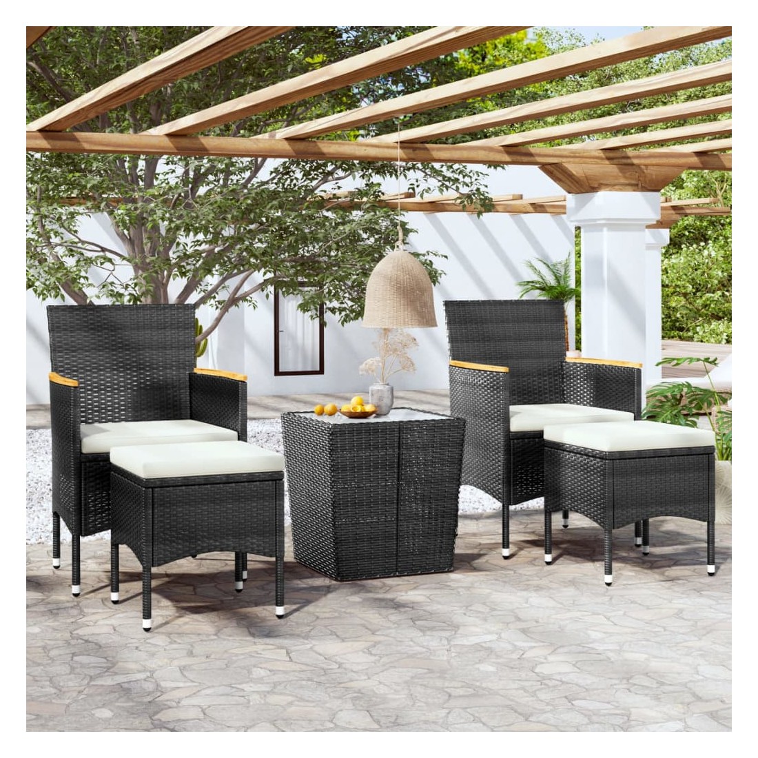 Ensemble de bistro de jardin 5 pcs poly rotin et verre trempé