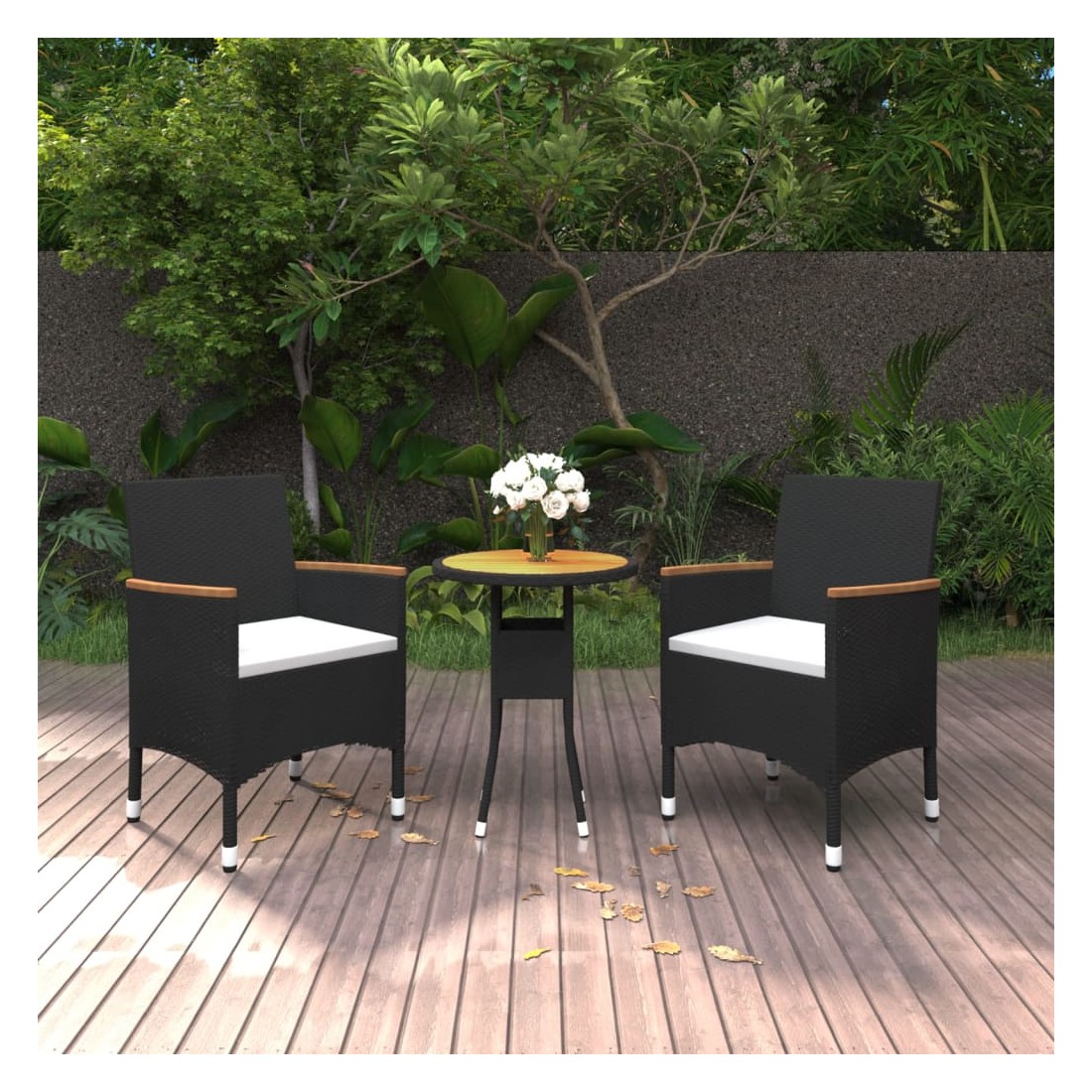 Ensemble à manger de jardin 3 pcs Résine tressée Noir