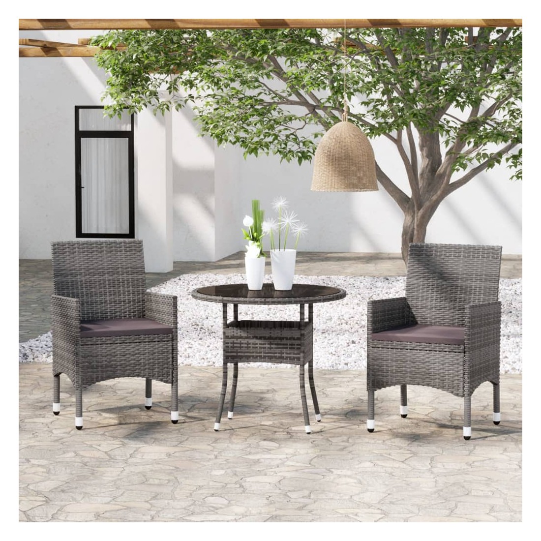 Ensemble à manger de jardin 3 pcs Résine tressée Gris