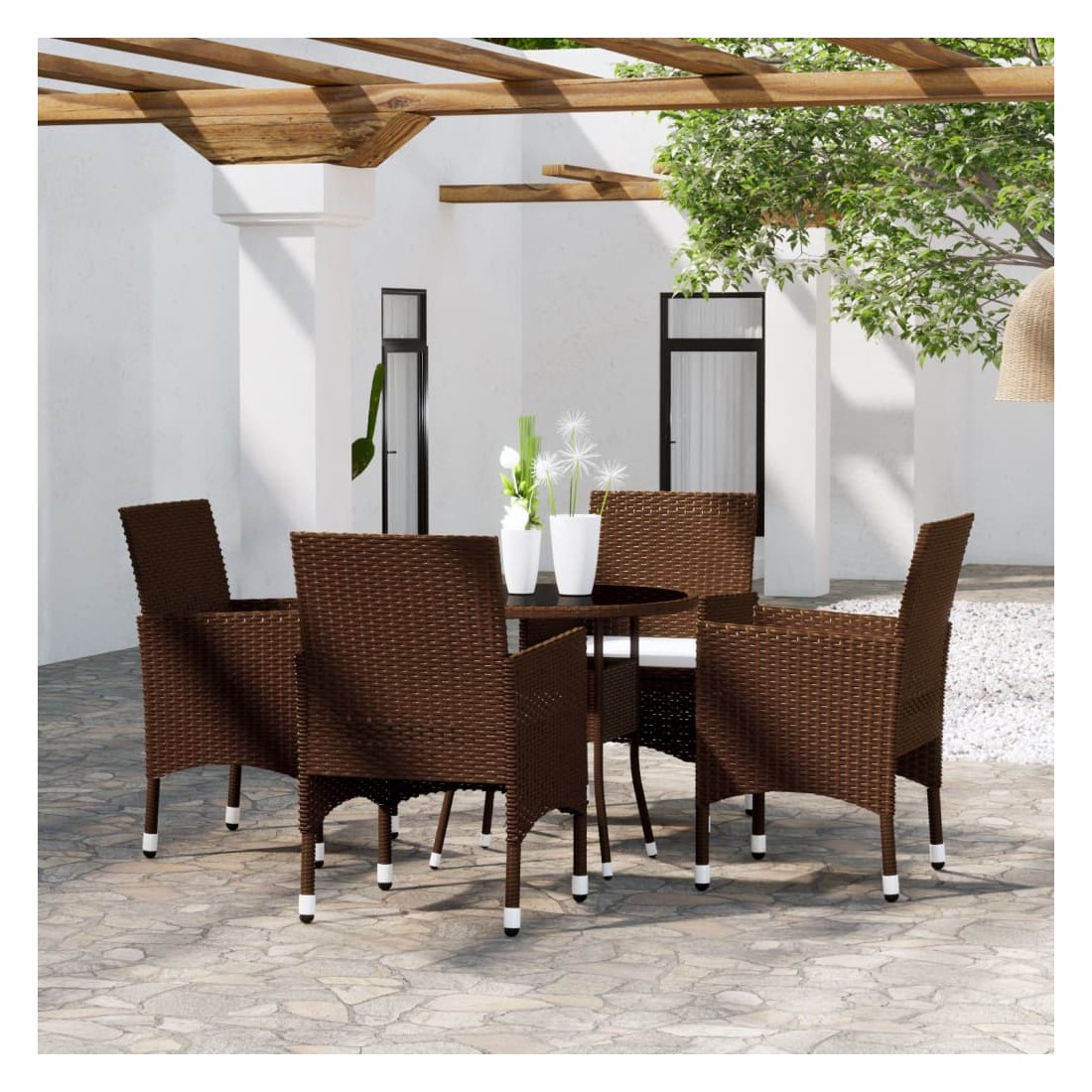 Ensemble à manger de jardin 5pcs Résine tressée Marron