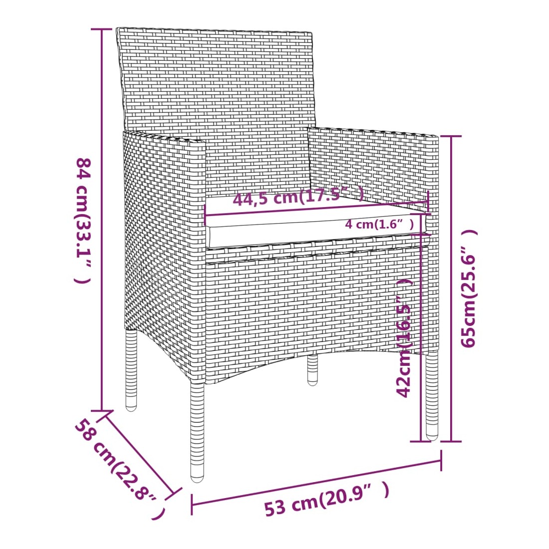 • Épaisseur du coussin de siège : 4 cm