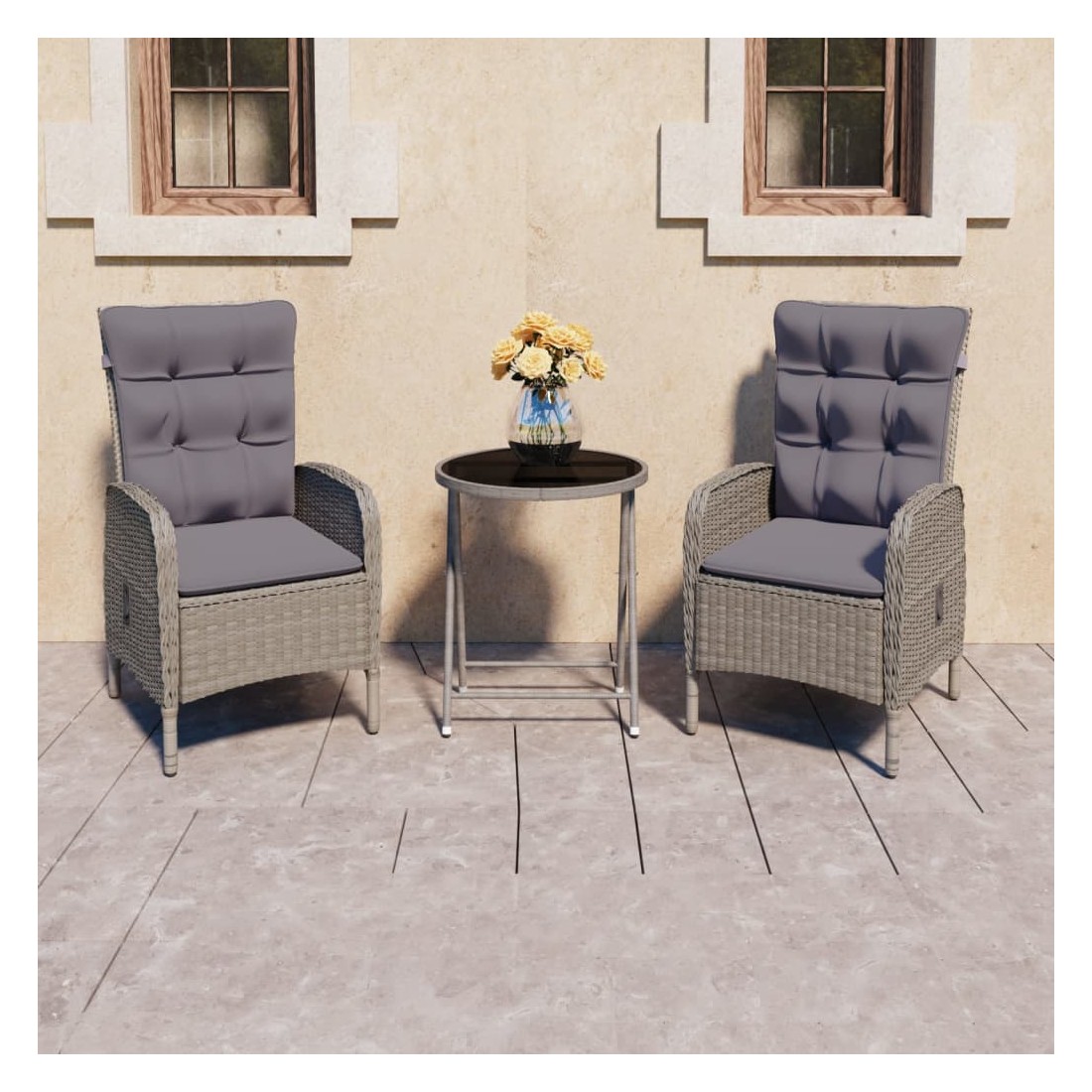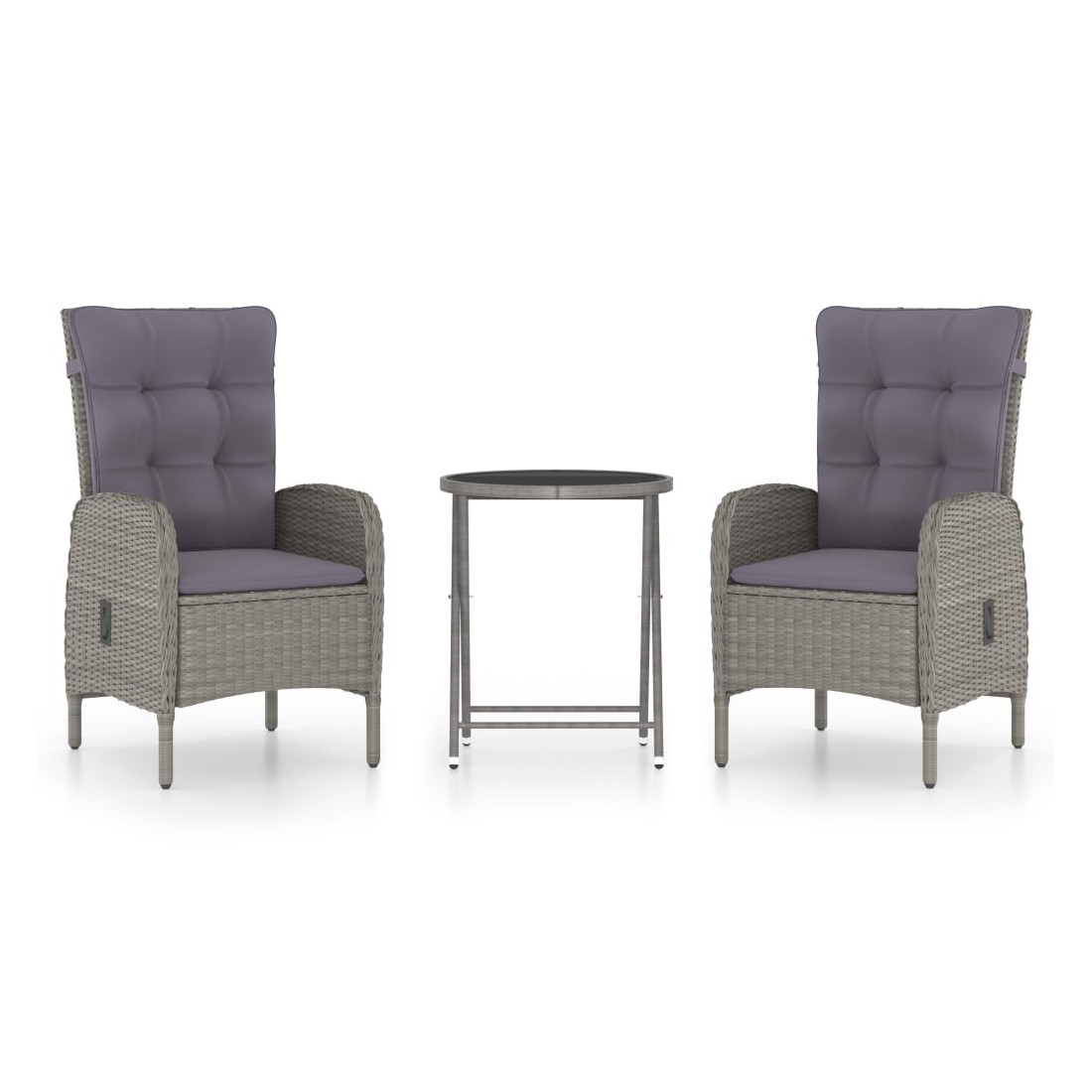 Cet élégant ensemble de bistro de jardin est conçu pour être le point central de votre jardin ou patio. C’est un excellent choix pour vous détendre en plein air dans les espaces extérieurs ! Les cadres en acier enduit de poudre rendent la table et les chaises solides. Grâce à leurs constructions légères, tous les articles sont faciles à déplacer. La résine tressée résistante aux intempéries et le dessus en verre sont faciles à nettoyer avec un chiffon humide. Les fauteuils sont conçus avec des dossiers incurvés et des accoudoirs pour un confort maximal. Les coussins sont inclus pour un soutien supplémentaire et la housse à fermeture éclair est amovible pour faciliter le lavage. Lorsqu'elle n’est pas utilisée, la table peut être repliée pour un rangement facile.