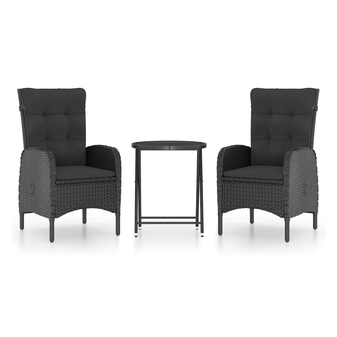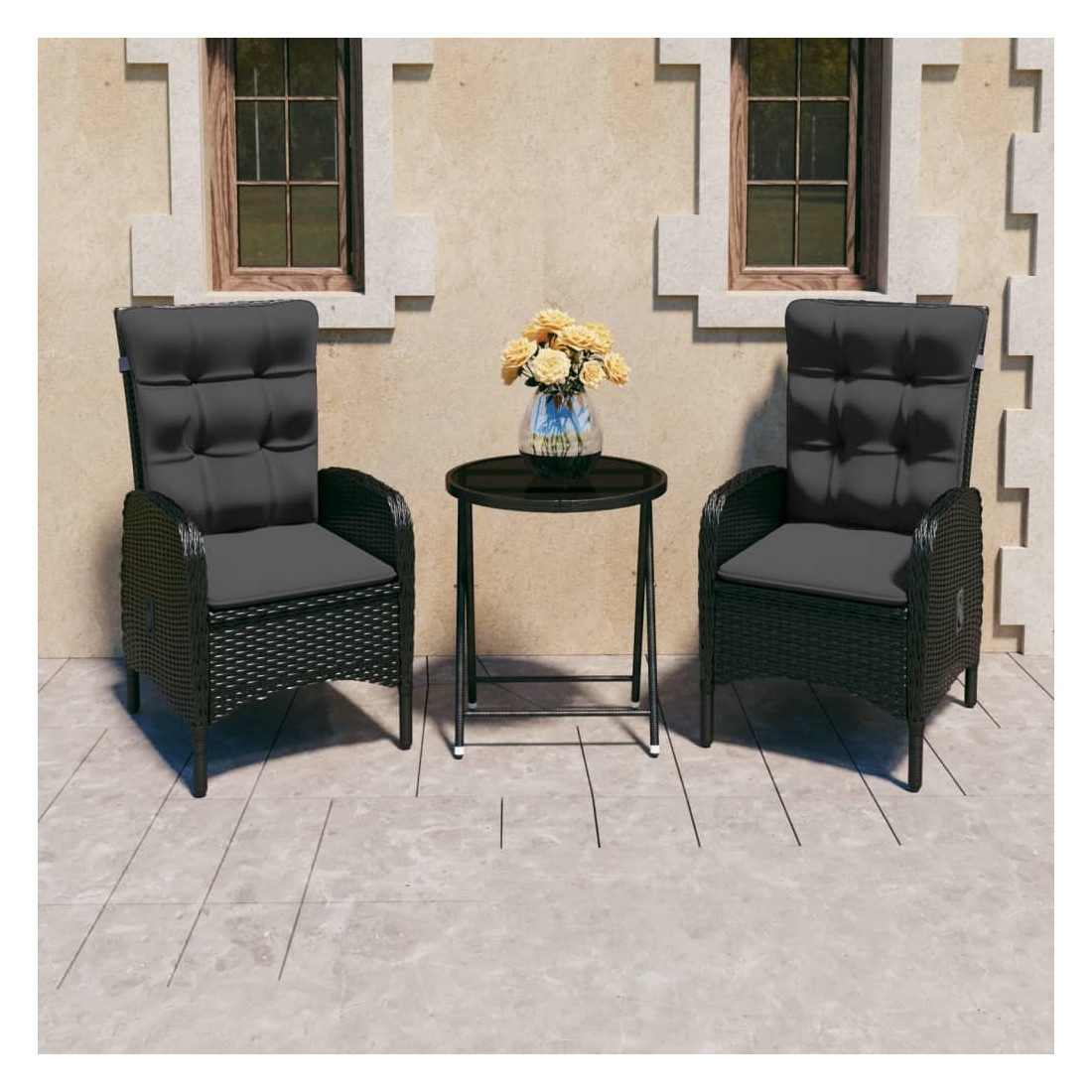 Ensemble de bistro de jardin 3 pcs Résine tressée et verre Noir