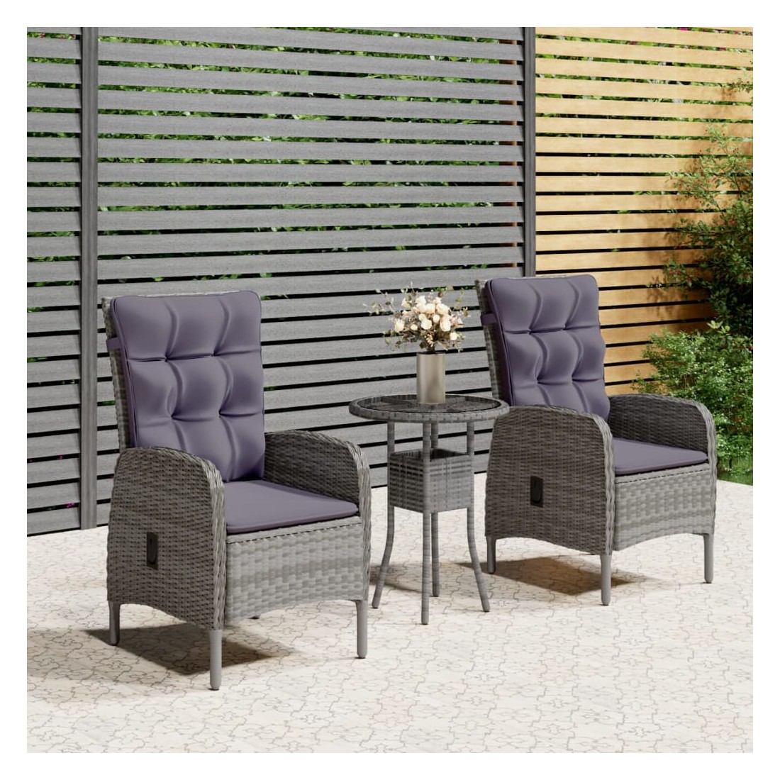 Cet élégant ensemble de bistro de jardin en résine tressée est conçu pour être le point de mire de votre jardin ou de votre patio. C'est un excellent choix pour les repas en plein air ou pour vous détendre dans l'espace extérieur ! Matériau de qualité supérieure : cadre en acier robuste enveloppé de résine tressée tissée à la main résistante aux intempéries, cet ensemble de patio d'extérieur est résistant à la rouille et à la moisissure, ce qui peut fournir des années de détente de qualité. Structure stable et solide : les cadres en acier garantissent la solidité et la stabilité. Chaises confortables : conçue avec un dossier et des accoudoirs incurvés, la chaise inclinable de jardin a une forme plus ergonomique pour un confort maximal. Des coussins sont inclus pour un soutien supplémen