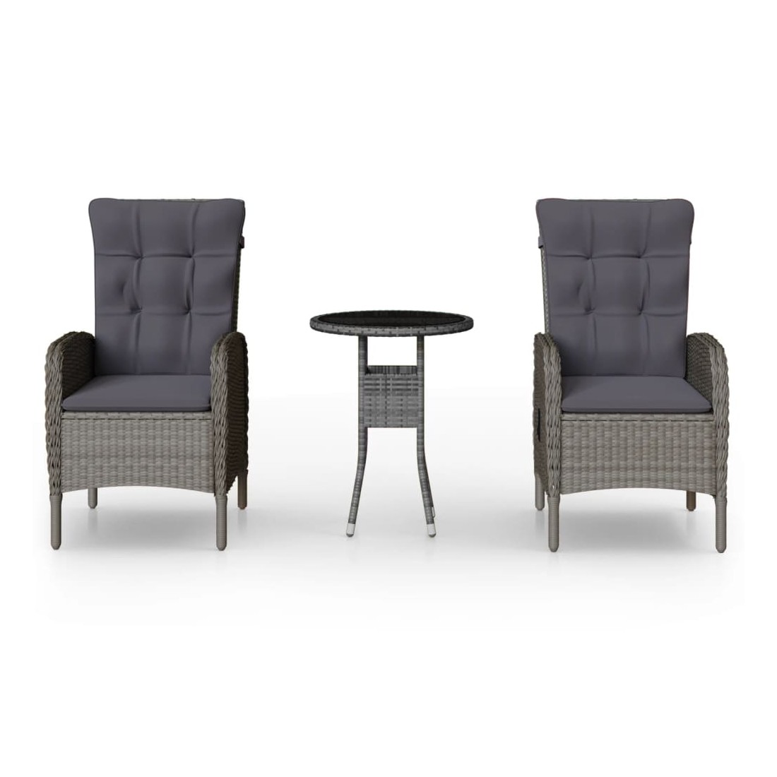 Cet élégant ensemble de bistro de jardin en résine tressée est conçu pour être le point de mire de votre jardin ou de votre patio. C'est un excellent choix pour les repas en plein air ou pour vous détendre dans l'espace extérieur ! Matériau de qualité supérieure : cadre en acier robuste enveloppé de résine tressée tissée à la main résistante aux intempéries, cet ensemble de patio d'extérieur est résistant à la rouille et à la moisissure, ce qui peut fournir des années de détente de qualité.Structure stable et solide : les cadres en acier garantissent la solidité et la stabilité.Chaises confortables : conçue avec un dossier et des accoudoirs incurvés, la chaise inclinable de jardin a une forme plus ergonomique pour un confort maximal. Des coussins sont inclus pour un soutien supplémentaire et la housse avec fermeture éclair est amovible pour un lavage facile.Mécanisme de levage à gaz : grâce au mécanisme de levage à gaz, le dossier du fauteuil de jardin est réglable pour s'adapter à vos positions. En touchant le bouton sur le côté, le dossier peut s'incliner, pour une position confortable.Construction légère : grâce à la construction légère, la table de bistrot et les chaises en résine tressée sont faciles à déplacer. Remarque :Afin de prolonger la durée de vie de votre mobilier d'extérieur, nous vous recommandons de le protéger avec une housse imperméable.