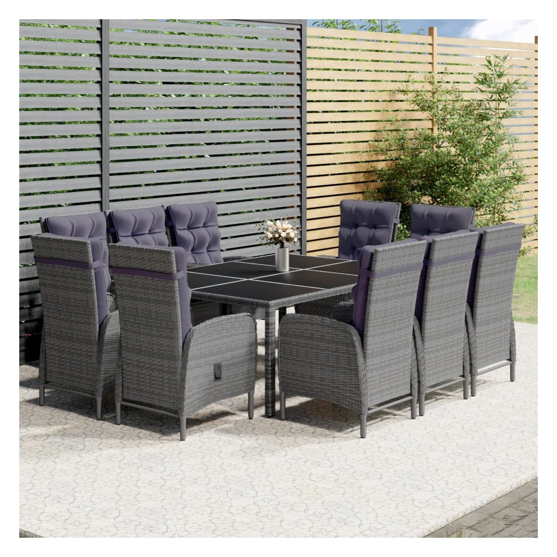 Ensemble à manger de jardin 11 pcs résine tressée gris
