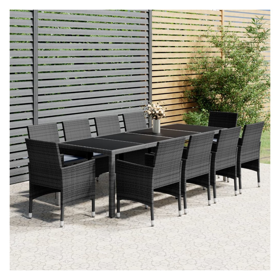 Ensemble à manger de jardin 11 pcs résine tressée gris