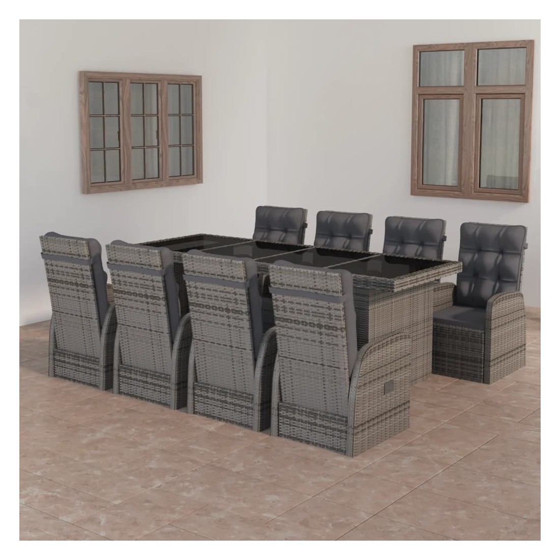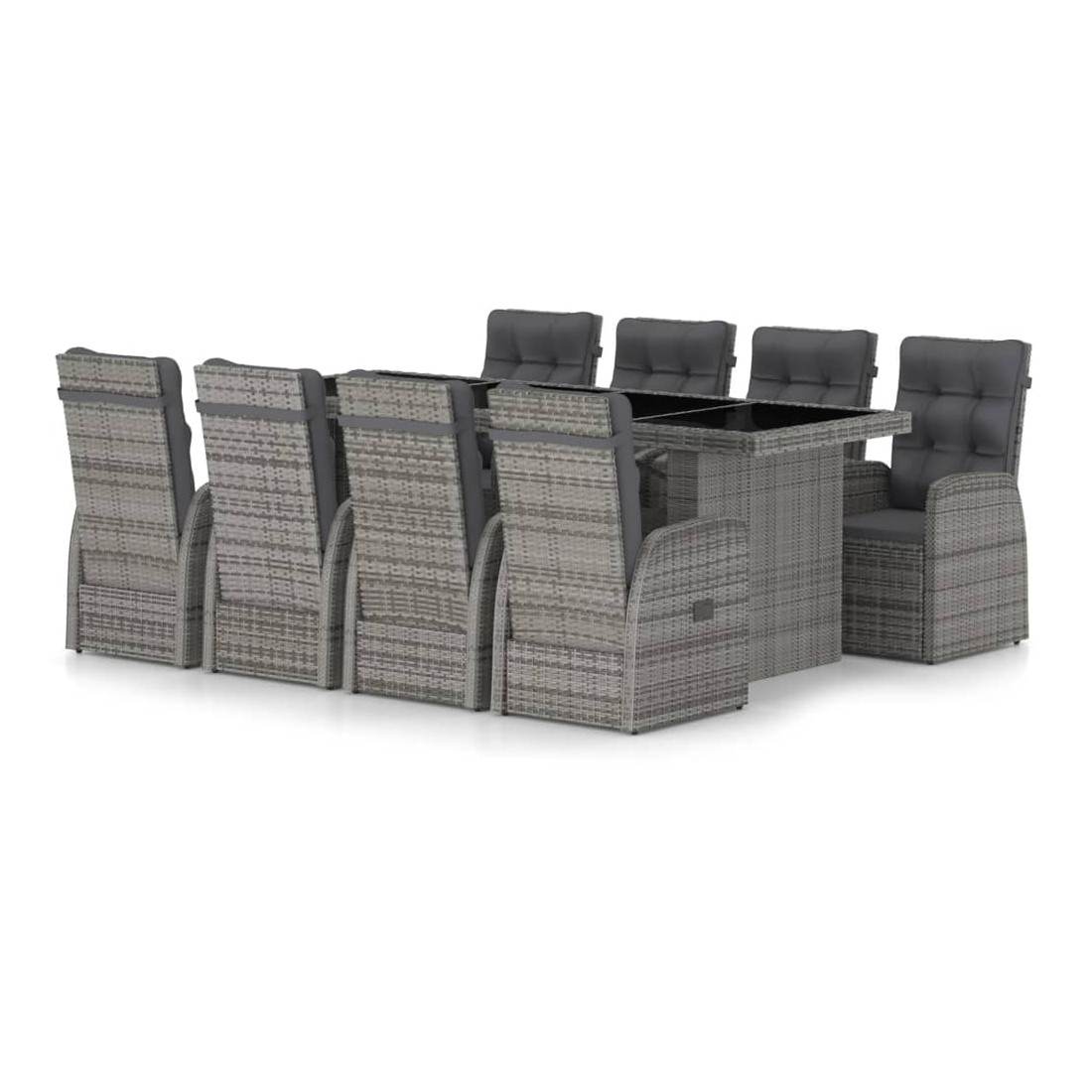 Ensemble à manger d'extérieur 9pcs coussins Résine tressée Gris