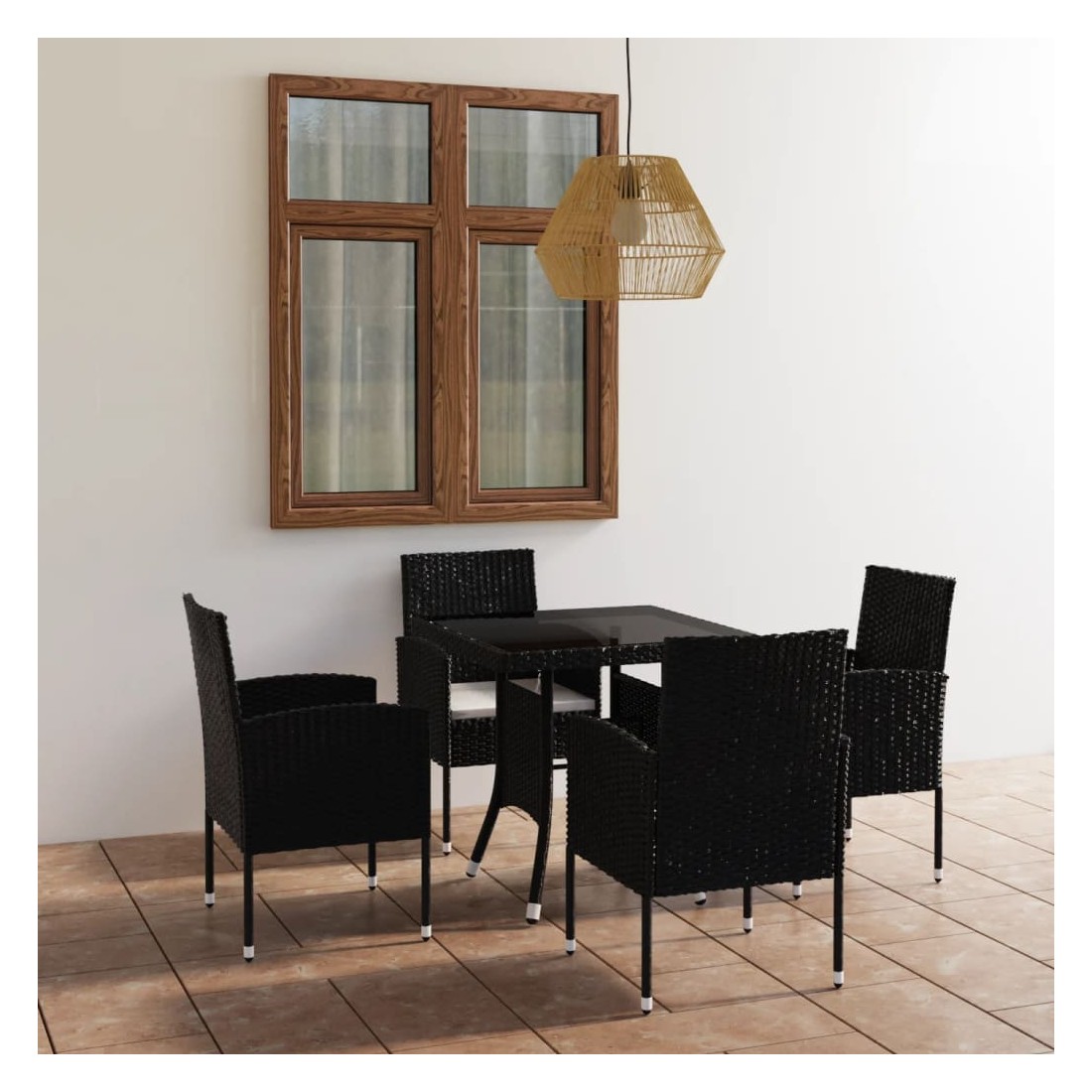 Ensemble à manger de jardin 5 pcs Résine tressée Noir