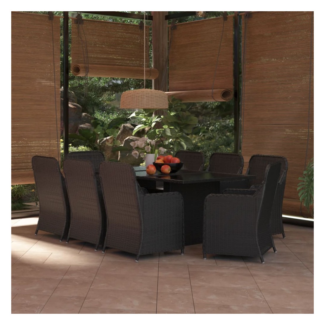 Ensemble à manger de jardin 9 pcs Résine tressée Noir