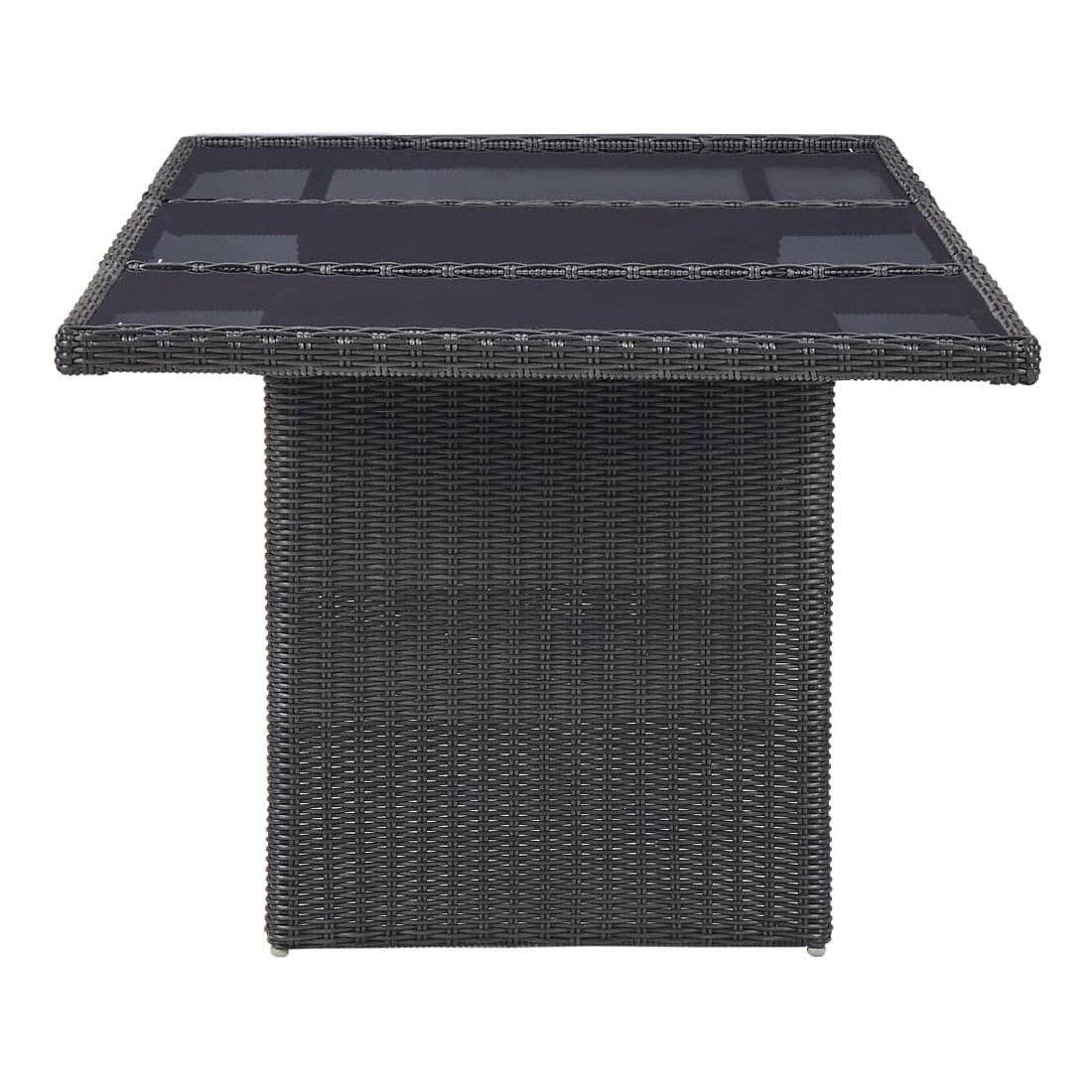 Cet ensemble de salle à manger de jardin au design élégant est un excellent choix pour dîner ou vous détendre dans le jardin ou sur la terrasse ! L'ensemble de meubles d'extérieur est doté d’un cadre solide en acier enduit de poudre qui le rend très stable et durable. Grâce à la résine tressée résistante aux intempéries, cet ensemble de salle à manger est facile à nettoyer, résistant à l'usure et convient à une utilisation quotidienne à l'extérieur. Le dessus de table en verre est également facile à nettoyer avec un chiffon humide. De plus, les coussins de siège doux inclus ajoutent également du confort supplémentaire à l'ensemble. Les housses de coussin en polyester à faible entretien peuvent être facilement retirées et lavées. Remarque : nous vous recommandons de couvrir l'ensemble p